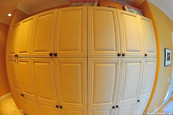 Use with Fisheye Hemi No problem. The Fisheye Hemi plugin works great, even with crappy film scans. This scan is from my Epson 4990 without even bothering to mount the slide properly. Roll your mouse over to see before and after. California Resort. Roll mouse over to see after Fisheye Hemi. My apologies for not holding the camera perfectly steady since I wanted to get the shot before I got thrown out. That's why the verticals aren't perfect in the after photo. Fisheye Hemi works even better on the D3. Cabinets at 1 meter (3 feet), before and after the Fisheye Hemi plugin. (roll mouse over.) Use with Panorama Tools Brian Caldwell calculated the R, G and B panorama tools coefficients as 0.0295, -0.13, 0, 1.1005 for DX digital SLRs.