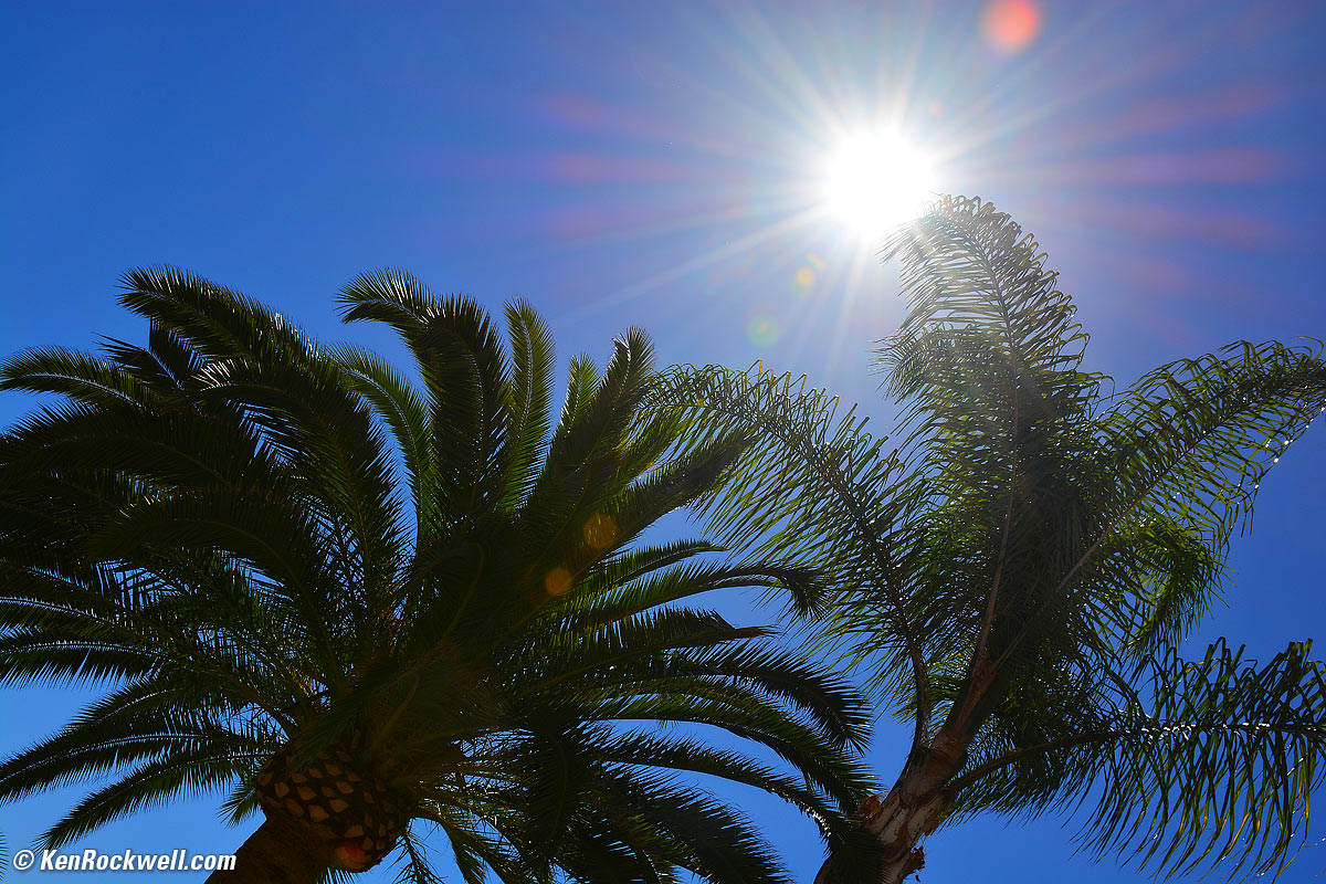 Star on The Star, f/13 at 140mm. With its rounded 7-bladed diaphragm, the 18-140 makes no stars at larger apertures. At f/11 to f/16 and smaller, you can get some messy 14-pointed stars. See also the disc of the sun above at Ghosts.