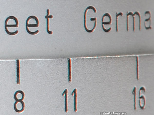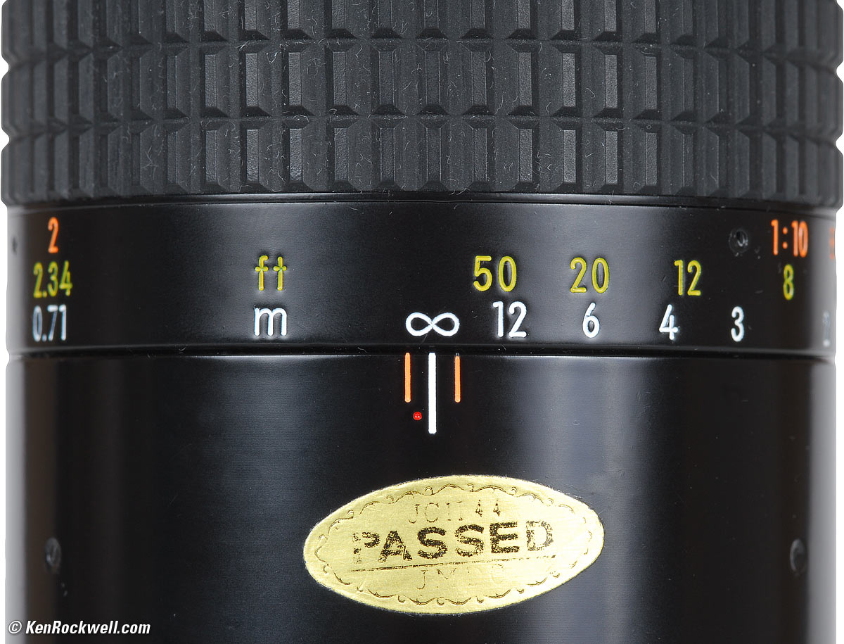 Depth-of-Field Scale Engraved into barrel and filled with orange paint for f/32 (AI-s version). Engraved into barrel and filled with green paint for f/32 (AI-s version).