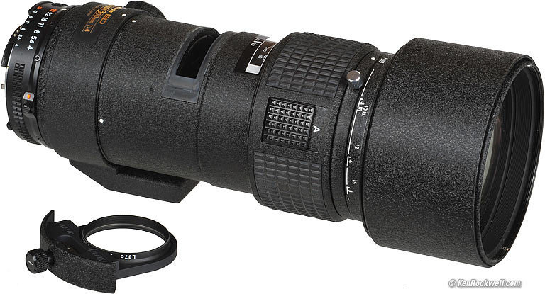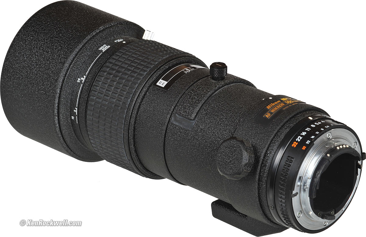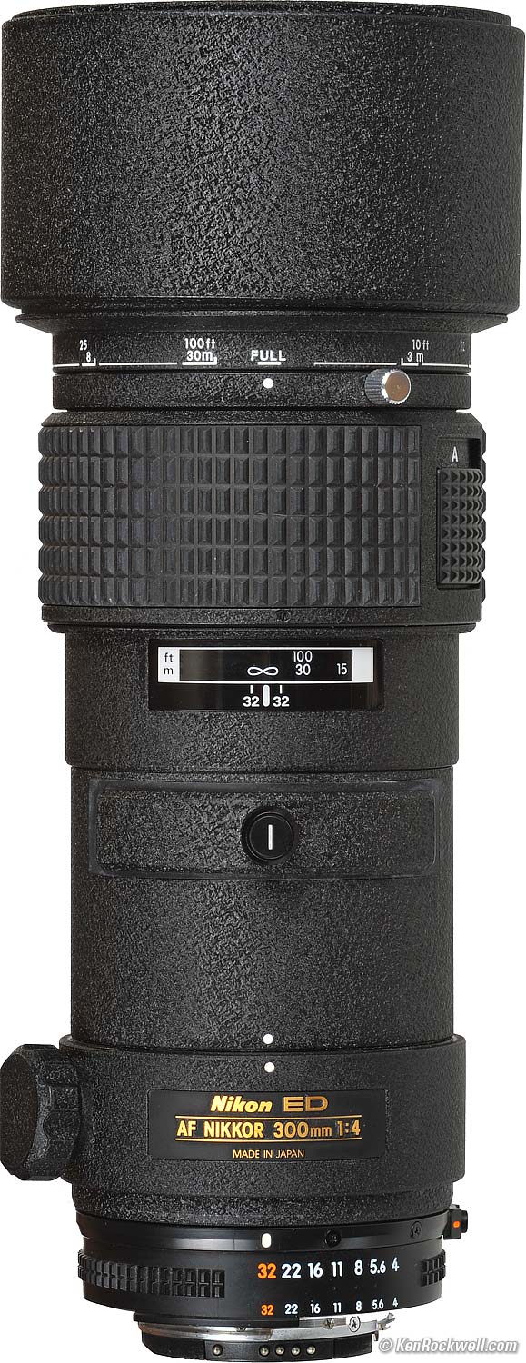 2:22 PM, 22 February 2022 Better Pictures Nikon Nikon Lenses Nikon Flash All Reviews All Nikon 300mm f/4 Lenses Compared Why Fixed Lenses Take Better Pictures IntroductionThis is a great lens. First I'll praise the unusually good mechanics and then get to the optics. It was plugged in the March 2000 issue of Outdoor Photographer magazine for it's superb performance mated with much smaller size and price in comparison to the 300/2.8. Not bad for a lens introduced in the 1980s and unchanged over its 13-year production life. Nikon didn't mess around with this gem. The 300/4 AF is built tough, in fact tougher than any other current under - $2,000 Nikkor lens. Nikon's super-teles used to be tanks, although their AF-s lenses are returning to plastic. This 300 is likely to be the toughest compact 300 AF Nikon will ever make. It's made almost entirely of metal. If you want SOLID, this is your lens. Even the front lens cover is a fake leather sock with a drawstring, just like Nikon's huge super-telephotos, and has the same drop-in 39mm filter holder. This holder is interchangeable with many other older $10,000 Nikon super telephotos that take 39mm filters. A second gelatin filter holder and case is included with new lenses.