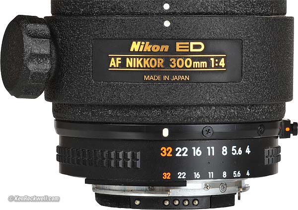 Nikon 300mm f/4 AF(1987-2000)Nikon 300mm f/4 AF (FX, DX and 35mm coverage, metal 82mm filter thread, 46.9 oz./1,330g., 8'/2.5m close focus, about $250 used). enlarge. I got mine used at eBay (see How to Win at eBay). This all-content, junk-free website's biggest source of support is when you use any of these links to approved sources when you get anything, regardless of the country in which you live. Camera boxes are not sealed, so never buy at retail or any source not on my personally approved list since you'll have no way of knowing if you're getting a defective or damaged customer return or a used lens. Buy only from the approved sources I use myself for the best prices, service, return policies and selection. Thanks for your support! Ken.