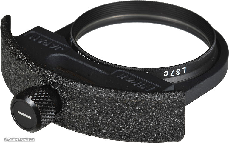Filters 82mm front metal thread. 39mm internal filter holder. The Nikon part number for a 39mm NC clear filter (only) is 2478NASI, and is 2256 for a 39mm A12.