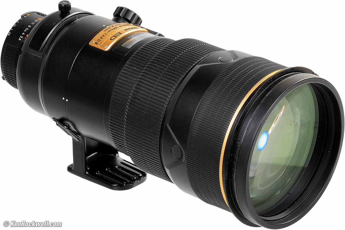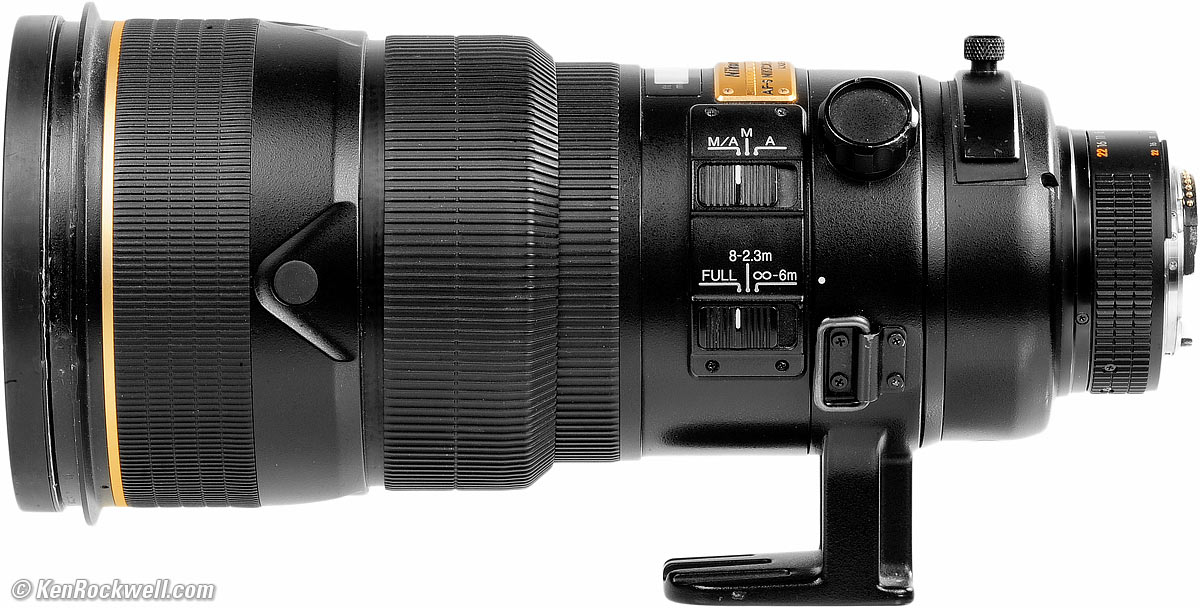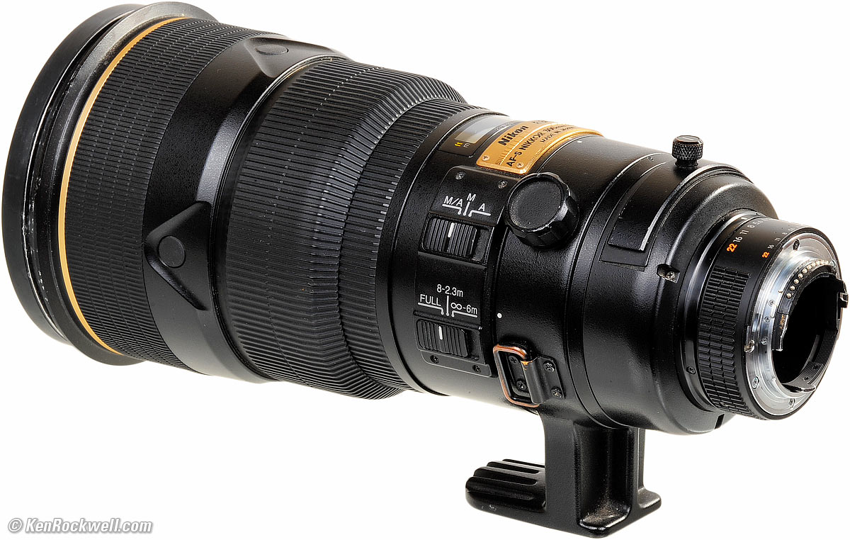 Recommendations top Introduction Sample Images Specifications Performance Usage Compared Recommendations The Nikon 300mm f/2.8 AF-S II is a top pick for any professional use for sports, nature, landscape and portraiture. It's fast, long, ultrasharp, has fantastic bokeh, focuses just about instantly and is Nikon's lightest autofocus 300/2.8 of all time — and no 300/2.8 focuses closer. In addition to being optically superior, another reason to own a 300/2.8 is to earn credibility in an extremely competitive world. When you show up to a portrait shoot, arts or sports venue with a 300/2.8 slung over your shoulder, especially with its big carbon-fibre hood in the operating position, you've defined yourself as an accomplished professional. You earn both the respect you deserve, as well as often being able to gain access to pros-only areas right down on the field, or in the press box. See Phil Steele's Event Photography tutorials for his secret ninja photographer tricks to use this lens to get you into concert and sports events. Never lie about who you are or what you're doing, but play your cards professionally and skilled shooters usually can get their way into VIP areas for free. Everyone has a 70-200/2.8. That won't set you apart, but when you show up to a shoot with your 300/2.8, everyone knows they hired the right guy, and this can get you more work next time from more people. Photographically, a 300/2.8 throws backgrounds much further out of focus than a 70-200 does at 200mm. This is why pros use the 300/2.8 as a portrait and headshot lens. It lets us stand farther away for better facial rendering (perspective), and at f/2.8 blows-out any annoying background into a wall of soft color far better than any 200mm lens can at f/2.8. The 300/2.8 has been a favorite of newsmen and paparazzi for ages. A 300/2.8 was used back in the 1970s by a newsman to shoot over the shoulder of Henry Kissinger and expose a secret document he was reading at a meeting, back when no one thought anyone could photograph something that small that far away in light that dim and still make it legible. Today, 300/2.8s are favorites of paparazzi who carry them with an attached body in a generic cloth shoulder shopping bag, ready to be drawn and fired the instant an unsuspecting subject appears. A 300mm f/2.8 is the most useful super-tele because it can do so much more than the longer, slower super teles. 1.4x, 1.7x or 2x converters make your 300/2.8 into a 420/4, 510/4.8 or 600/5.6, with great sharpness and autofocus, but if you bought a 400/4 or 600mm lens, you can't make it shorter or faster — but you always can take an extender off the 300/2.8. A 400/2.8 also works as well with extenders and is therefore also very versatile if you can afford just one super-tele. A 300/2.8 is the lightest super-tele. A 400/2.8 or longer lens gets much heavier. This 300/2.8 is about the heaviest lens a sane man will want to hand-hold. VR is a feature not really needed for a 300/2.8. We use 300/2.8s for sports, for which VR is of no help, or on a tripod, or shooting wide-open at fast shutter speeds, again for which VR is of no help. Unless you really need VR, which only helps for photographing still subjects hand-held, or need an even older lens to get a standard 9-bladed diaphragm for better sunstars for cityscapes at night, this AF-S II is the 300mm f/2.8 lens to get, for half the price of a new VR version. I'd get it at this link directly to them at eBay (see How to Win at eBay). This all-content, junk-free website's biggest source of support is when you use those or any of these links to approved sources when you get anything, regardless of the country in which you live — but I receive nothing for my efforts if you take the chance of buying elsewhere. I get no government hand-outs and run no pledge drives to support my research, so please always use any of these links to approved sources for the best prices, service and selection whenever you get anything. Thanks for helping me help you! Ken.