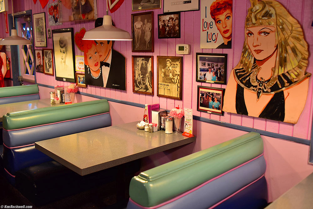 Booths at Peggy Sue's Restaurant, Yermo, 6:43 PM, 07 February 2015. Nikon D810, Nikon 35mm f/1.4 NIKKOR AI-s, f/2.8 at 1/20 hand-held at Auto ISO 500. bigger.