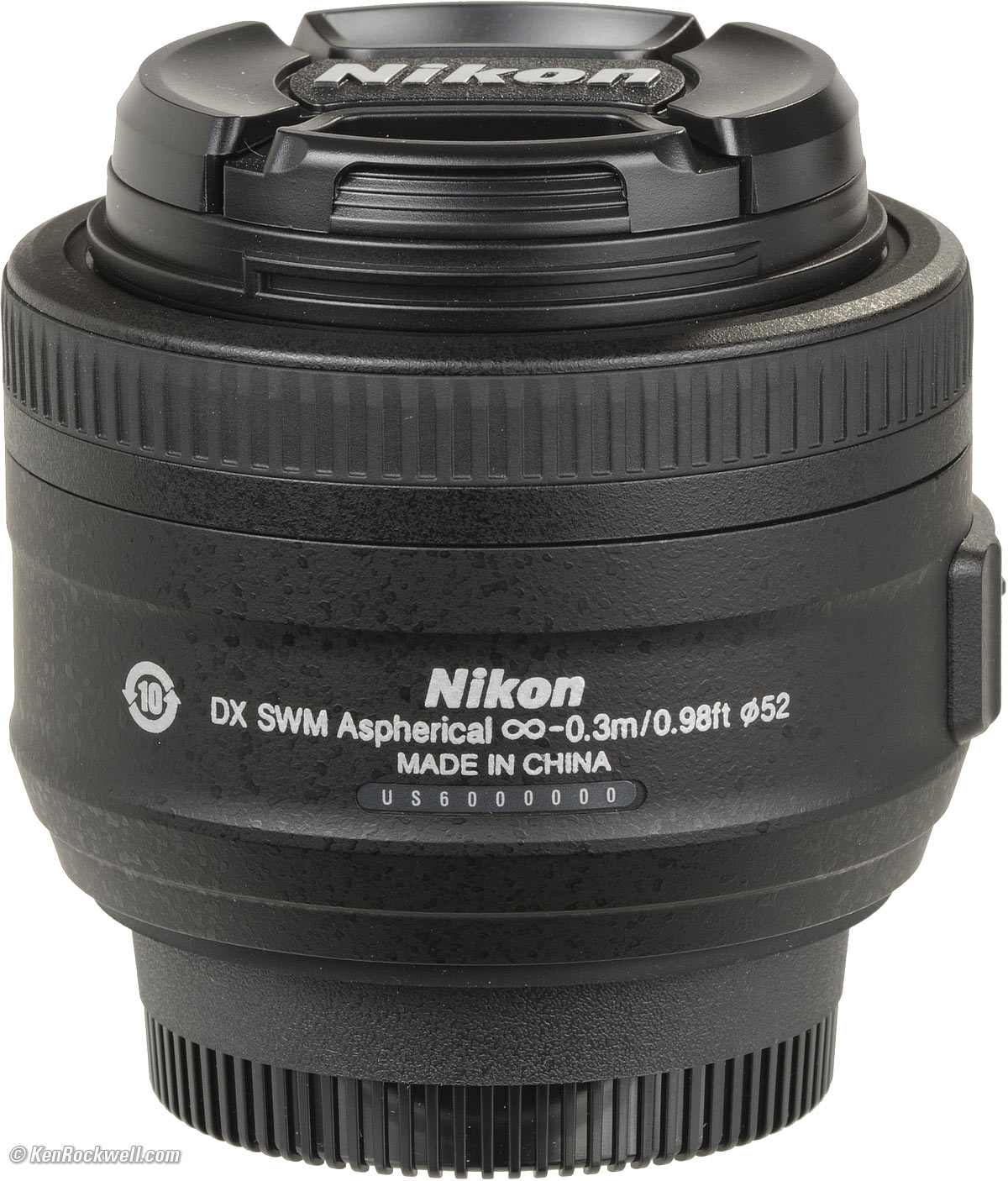 Nikon 35mm f/1.8 with included caps.
