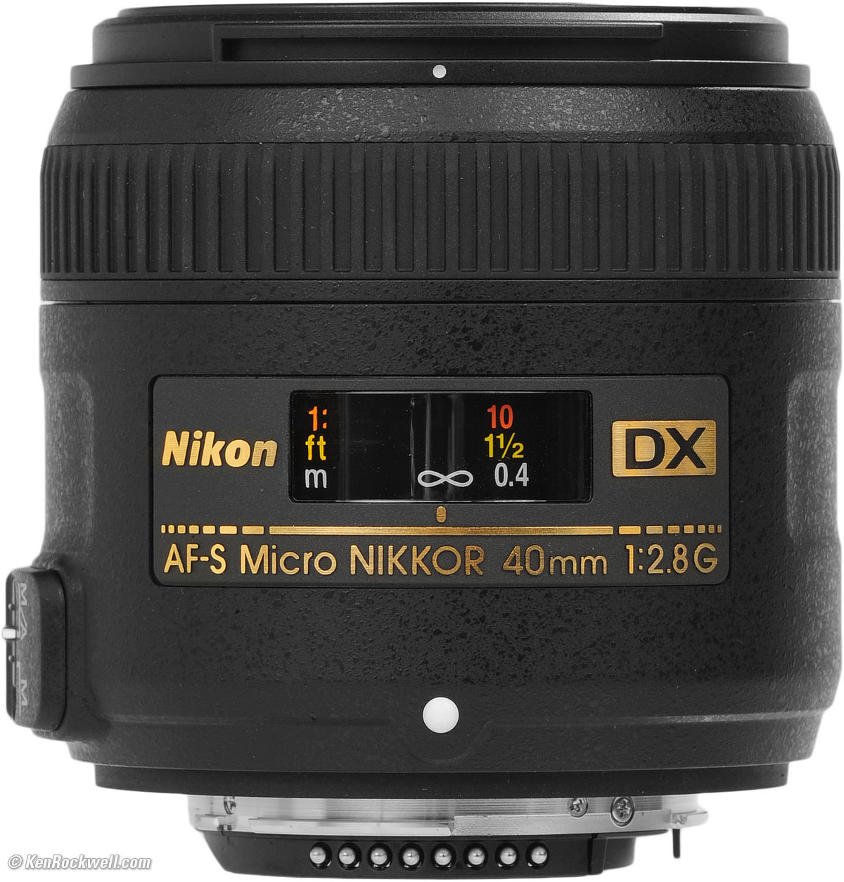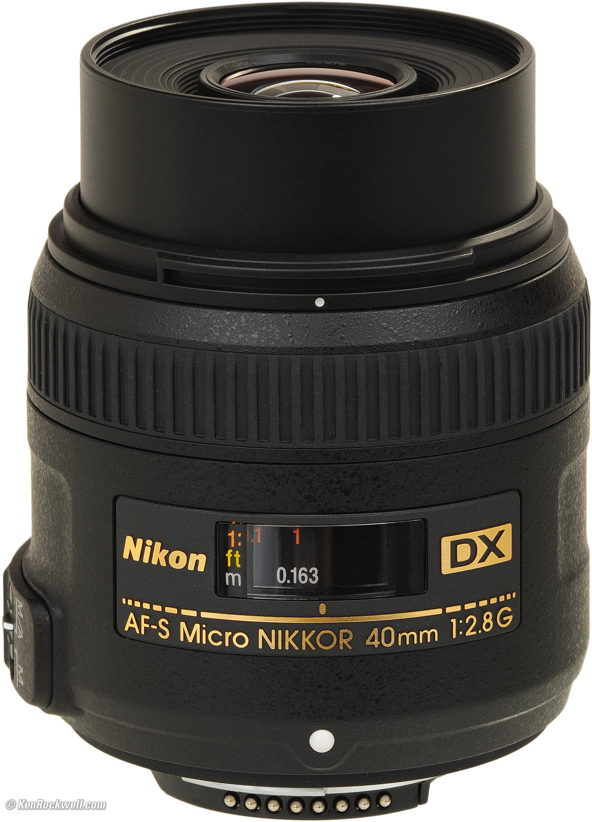 Nikon AF-S 40mm f/2.8G DX Micro-NIKKOR (52mm filters, 8.0 oz./227g, 1:1 macro ratio, 0.5'/0.163m (1:1) close focus, $277). bigger.