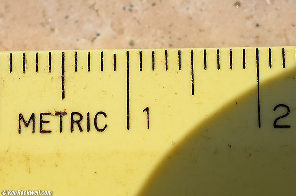 Of course for macro use with normal (three-dimensional) subjects, f/22 or f/32 is usually the best to try to keep things in focus. Figuring out the optimum aperture taking both diffraction and depth-of-field into account is beyond the scope of this review.