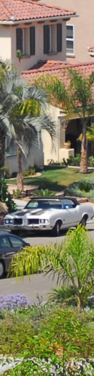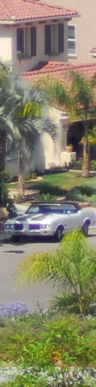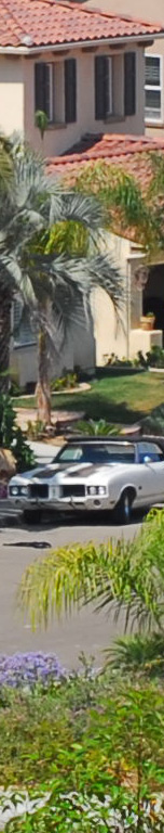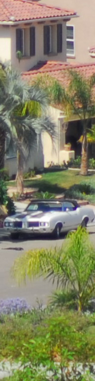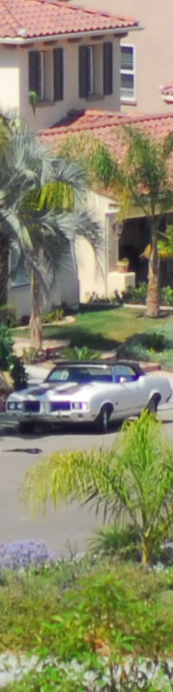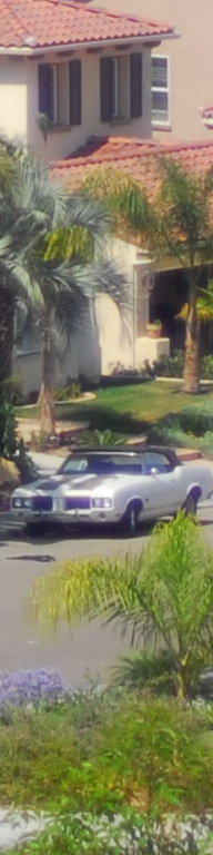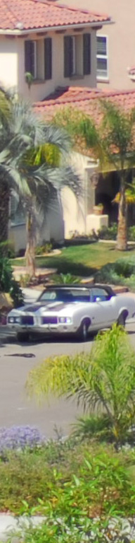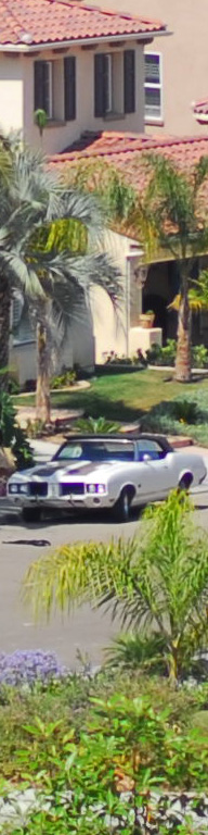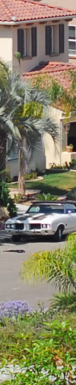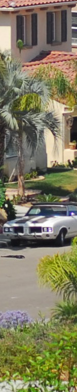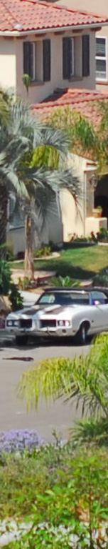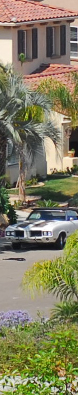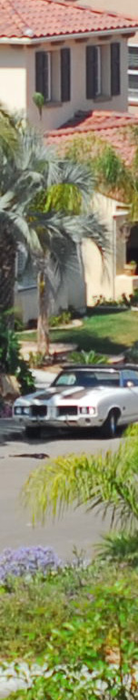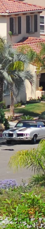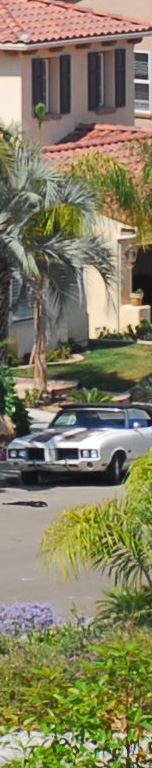 Now I've added the 55mm f/2.8 Micro, whose maximum aperture is f/2.8. I see the 55 micro as the sharpest by a nose on the palms, the three f/1.4 lenses (ZF, AF-D and AI) a close second, and the f/1.8 AF last. The 55mm Micro is sharper wide open as the f/1.4 lenses stopped down, although oddly the depth of field seems to work in the favor of the f/1.4 lenses for the vegetation closer to the camera. I presume this to be a remnant of the focus shift seen at f/2 on the f/1.4 lenses. Most likely if my target extended to real infinity the 55mm might have had an edge and the f/1.4 lenses may have been worse. The car is at 550 feet (170 meters) and the brush is at 225 feet (75 meters) in the foreground and 350 feet (110 meters) for the palm and purple plant. |