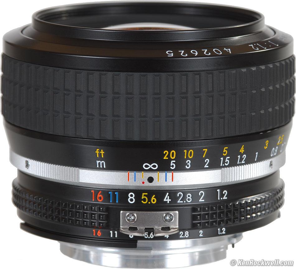 50mm f/1.2 Intro Specs Performance Recommendations Nikon Nikkor 50mm f/1.2 AI-s (FX, DX and 35mm coverage, 52mm filters, 12.5 oz. /354g, 1.65'/0.5m close-focus, about $650 new or $450 used.). enlarge. My biggest source of support is when you use any of these links, especially these links to them brand-spanking-new at Adorama, B&H Photo-Video and Amazon or this link directly to them at eBay (see How to Win at eBay), when you get anything, regardless of the country in which you live. Thanks! Ken.
