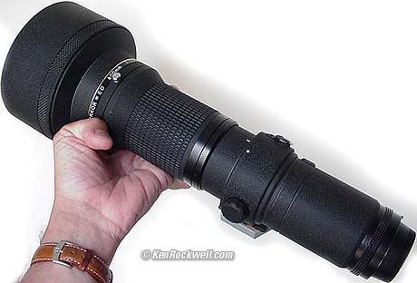 Hand Holding It is OK for hand holding. I never could believe just how slow I could hold it. I think I tried at 1/125 and even 1/30 and got results so good that I couldn't believe I did it. I hypothesize that because all the weight is at the very front that the camera and lens have a very high moment of inertia (all the weight at either end) so that it acts to stabilize the system, unlike a 500mm mirror lens that has little inertial resistance to shake.