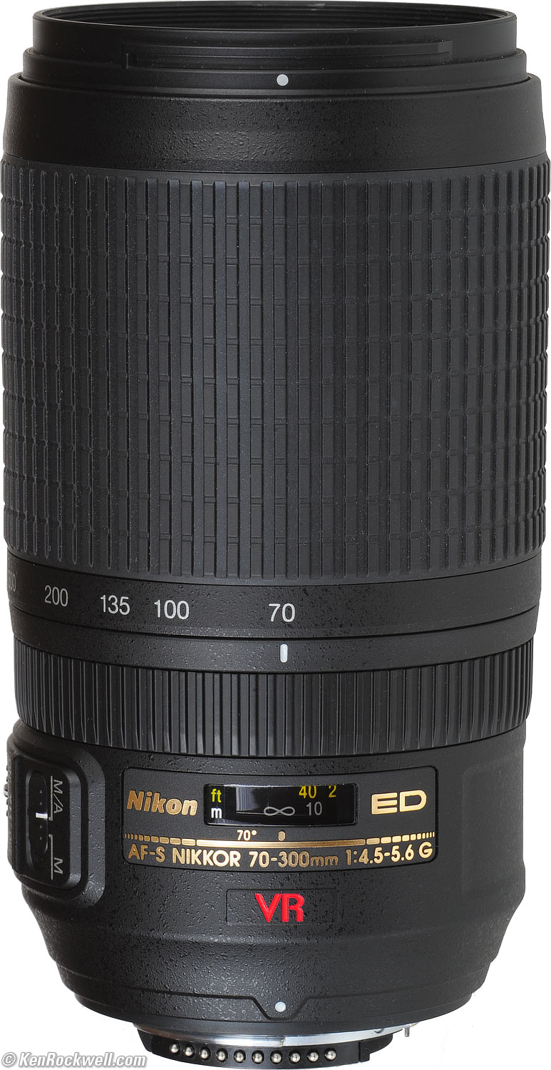 Specifications top Intro Specs Performance Recommendations Name Nikon calls this the Nikon AF-S VR Zoom-Nikkor 70-300mm f/4.5 - 5.6G IF-ED AFS: Quiet AF and instant manual focus override. Just grab the focus ring. VR II: Vibration Reduction, new version. This means you can get sharp pictures without a tripod. Nikon claims four stops sharper. G: No aperture ring. Only works on cameras newer than about 1992. IF: Internal Focusing. Nothing moves on the outside of the lens when it focuses. ED: Magic glass for sharper images SWM: Silent Wave Motor for fast, quiet focusing. All this and more explained in greater depth on my Nikon Lens Technology page.