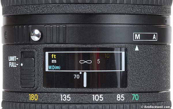 Ergonomics performance top Nikon 70-180mm macro. bigger. It's a screw-focus lens. The front moves in and out as focused
