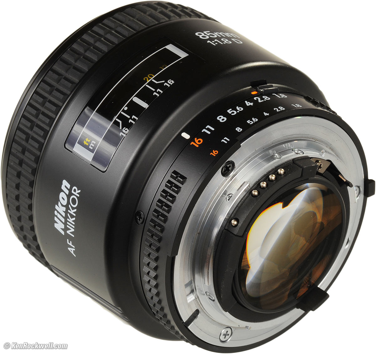 Specifications top Intro Specifications Performance Compared Recommendations Name top Nikon calls this the Nikon AF NIKKOR 85mm f/1.8 or f/1.8D RF. NIKKOR: Nikon's brand name for their lenses. D: Couples distance information to the Matrix Meter (from 1994). RF: Rear focusing; nothing moves externally as focused except the rear element. ∅62: 62mm filter thread.