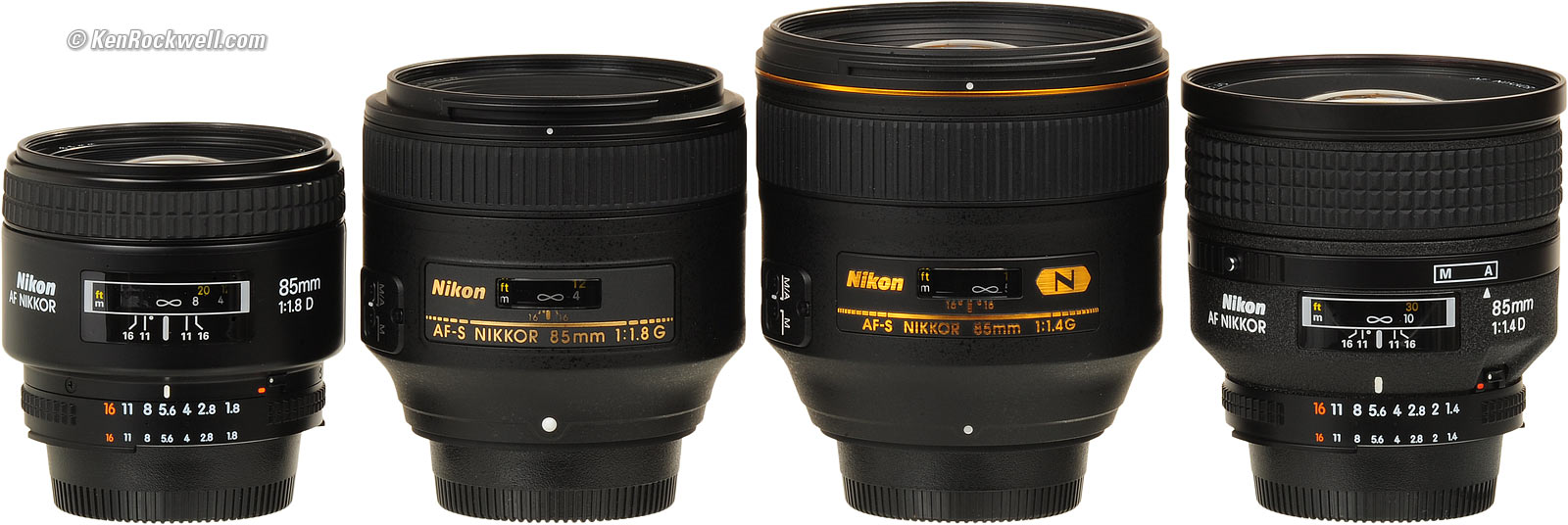 Nikon 85/1.8D, 85/1.8G, 85/1.4G and 85/1.4D. enlarge. This free website's biggest source of support is when you use these links when you get anything, regardless of the country in which you live. Thanks! Ken.