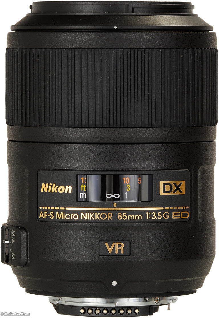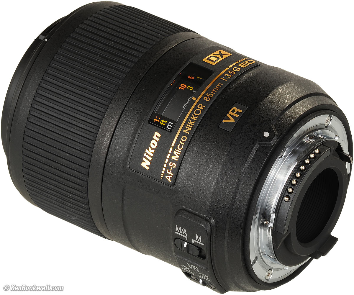 Nikon 85mm f/3.5 DX VRAF-S Micro-NIKKOR ED (2009 ~ )Use the FTZ or FTZ II adapter to use this on Nikon Z mirrorless.How to Shoot Macro Best Macro Lenses Compared Intro Specifications Performance Usage Compared Recommendations Nikon 85mm f/3.5 DX VR (52mm filters, 12.4 oz./352g, 1:1 close-focus, $557 new, or about $227 used if you know How to Win at eBay). bigger. I got mine at Adorama. I'd also get it at Amazon, at B&H or at Crutchfield, or get it used at eBay (How to Win at eBay). This 100% all-content, junk-free website's biggest source of support is when you use those or any of these links to my personally-approved sources when you get anything, regardless of the country in which you live. Nikon does not seal its boxes in any way, so never buy at retail or any other source not on my personally approved list since you'll have no way of knowing if you're missing accessories, getting a defective, damaged, returned, non-USA, gray-market, store demo or used lens. Get yours only from the trusted sources I've used personally for decades for the best prices, service, return policies and selection. Thanks for helping me help you! Ken.