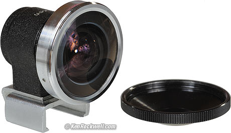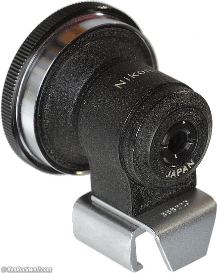 The finder has no rear cap. The finder slips into grooves in the plastic rear cap to keep this all together. The plastic rear cap is very deep to accommodate the protruding rear elements. This weird cap also attaches to any other Nikon SLR lens as you swap lenses.
