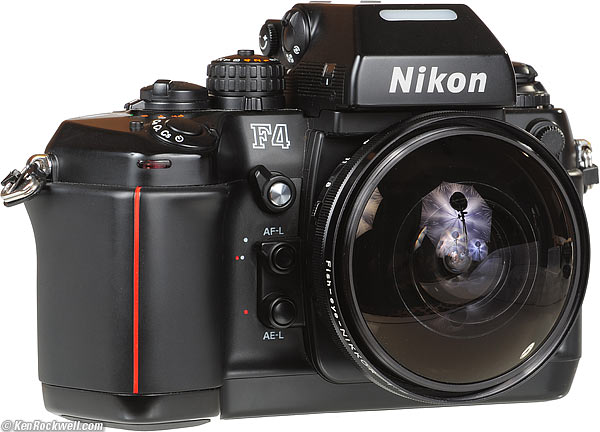 On the F4 Nikon F4 with Nikon 7.5mm f/5.6, but no finder. The problem with the F4 is that it has a real hot shoe. The 8mm finder can't mount to a standard hot shoe! You would need a Nikon AS-2 adapter to convert a standard hot shoe to the weird old Nikon F mount needed by the 8mm finder. Sometimes Adorama has these used, and if you get one, you ought to be golden — almost. Once you get all set with a finder on your F4, you can't hand-hold it because the 8mm lens will see your fingers wrapped around the big, permanent battery grip! Nikon 7.5mm f/5.6 on F4. When I shot this 8mm, I shot it on a tripod on my F4 because I had other lenses, like the newest 24mm PC-E, that I also needed to shoot on the same roll. I composed by first putting on an 8mm f/2.8, which lets me meter and look through the finder, composing, metering (manual) and then locking up the mirror, changing to the 8mm, and shooting. Clearly this is a silly way to shoot the 8mm, since it requires an 8mm f/2.8 and changing lenses! I did this to compare them; no reasonable person would shoot the 8mm this way.