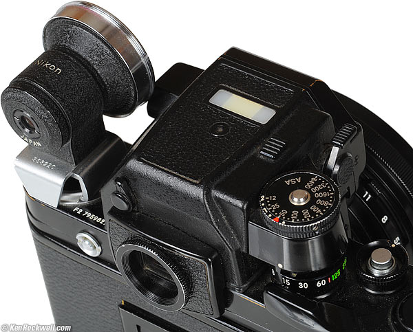 Compatibility top Even as a collectors' item, Nikon hasn't forgotten it. It's mentioned on page 374 of my D800 USA user's manual. Sadly the mention is on the list of incompatible lenses! This is one of the very few Nikon lenses which simply won't work properly on any digital camera unless you rig up some sort of complex optical relay system beyond the scope of this website — or if you dare pull-up the mirror with your finger and jam in the lens. Do this, use Live View, and you're good to go! If you follow Nikon's directions, it only works properly on cameras which allow full-time mirror lockup, which means the F, F2, F3, F4, F5 and some of the earliest pre-AI amateur Nikons, like the Nikkormat FT, from the early 1970s. With the Nikon F, you need to remove any Photomic finder since it will interfere. Likewise with the Nikon F, locking up the mirror is a multi-step affair requiring you to waste a frame of film. If you're queasy about trying to hold-up your mirror as you attempt to jam this lens on your camera (DSLR mirrors aren't just a mirror; they are a complex network of many mirrors moving in every direction), you might also want to try the "Mirror Lock-Up for Cleaning" menu option. Much more at Usage.