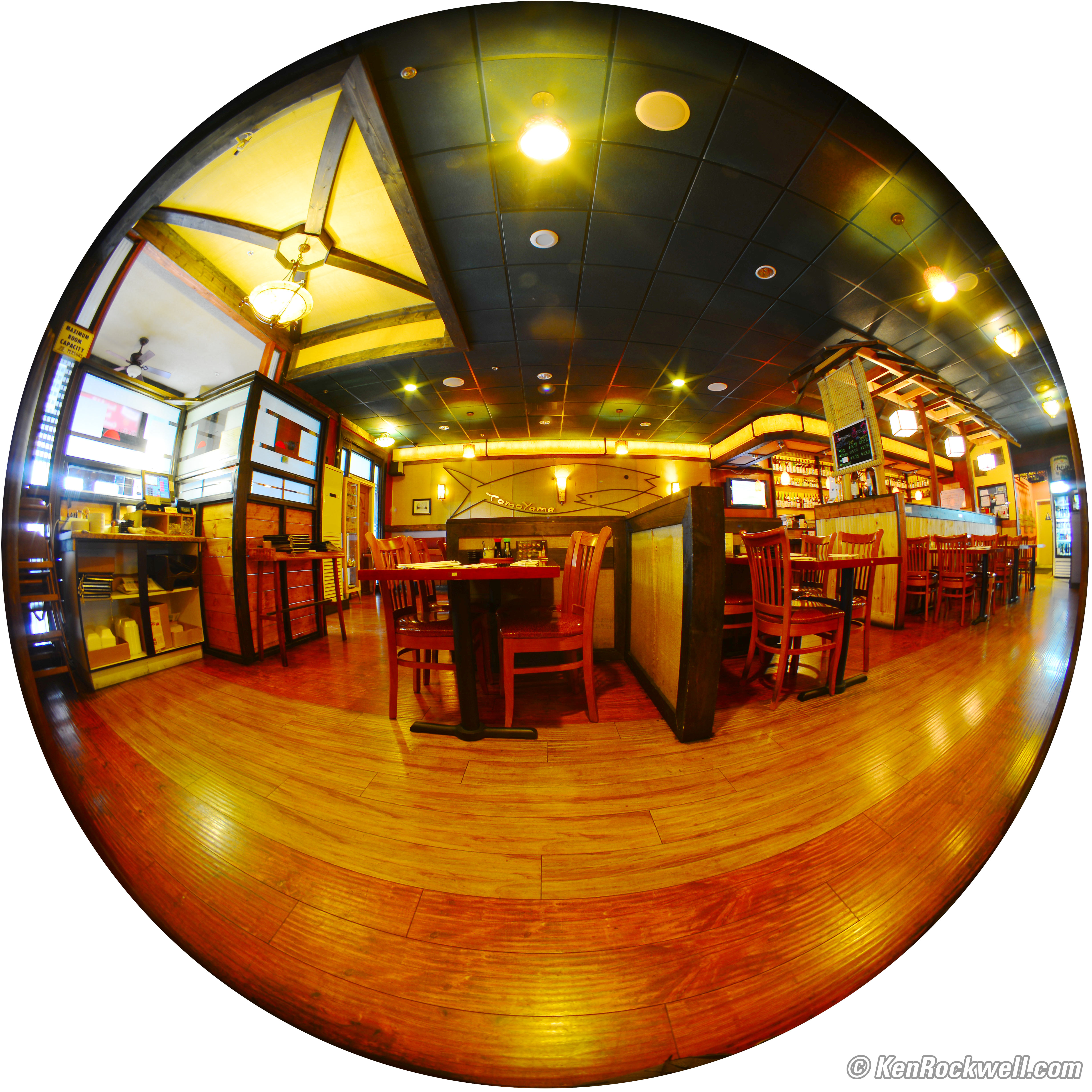 Recommendations top Intro Specs Performance Usage Recommendations Tokyo. (Nikon D800, 4 seconds at f/8 at ISO 100.) full-resolution. Ultrawide Lenses are the most difficult to use. You usually have to get very close to ensure that the Basics of Composition are rendered strongly enough. You never can just point and shoot, as I did above: there are no big, bold elements strong enough to make an eye-catching photo unless you position your camera very close and very carefully. Circular fisheyes therefore are the most useless lenses in photography, and ones that require mirror lock-up like this are the least useful fisheyes. If you stumble across one of these at a reasonable price as I did, sure, it can make crazy fisheye images as well as any other lens, but I wouldn't seek it out specifically today. For taking pictures, get the far more practical 8mm f/2.8 or Pro-Optic 8mm f/3.5 or 10.5mm DX. If you're considering the purchase of one of these, be sure you realize that its value isn't for photography, but for collectors. Collectors expect all the parts, caps cases and instructions to come with it. If you get one, don't lose anything. Don't even consider one missing the front cap; there's no way to pack or ship it safely without. I've seen people offering these on eBay with a standard rear cap cut-out so the back of the lens pokes out; that doesn't count! When evaluating a used lens, snap the sky at f/22. I've seen internal fungus with these lenses, which becomes in-focus in your image at f/22. Press the lens release button, rotate the lens a bit, and be sure any dust spots are on your sensor (they won't move) and not inside your lens (which will move as the lens is rotated).