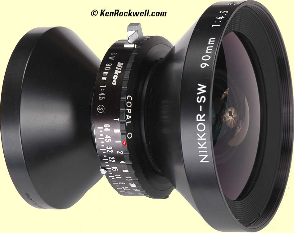 The Nikkor-SW 90mm f/4.5 is both huge and excellent. I bought mine new in 1993. I found it too big to carry around along with my 65mm f/8 Super Angulon, so I replaced them both with a 75mm f/5.6 Super Angulon and sold this 90mm in 2004 for $1,025, used, in it's original box.