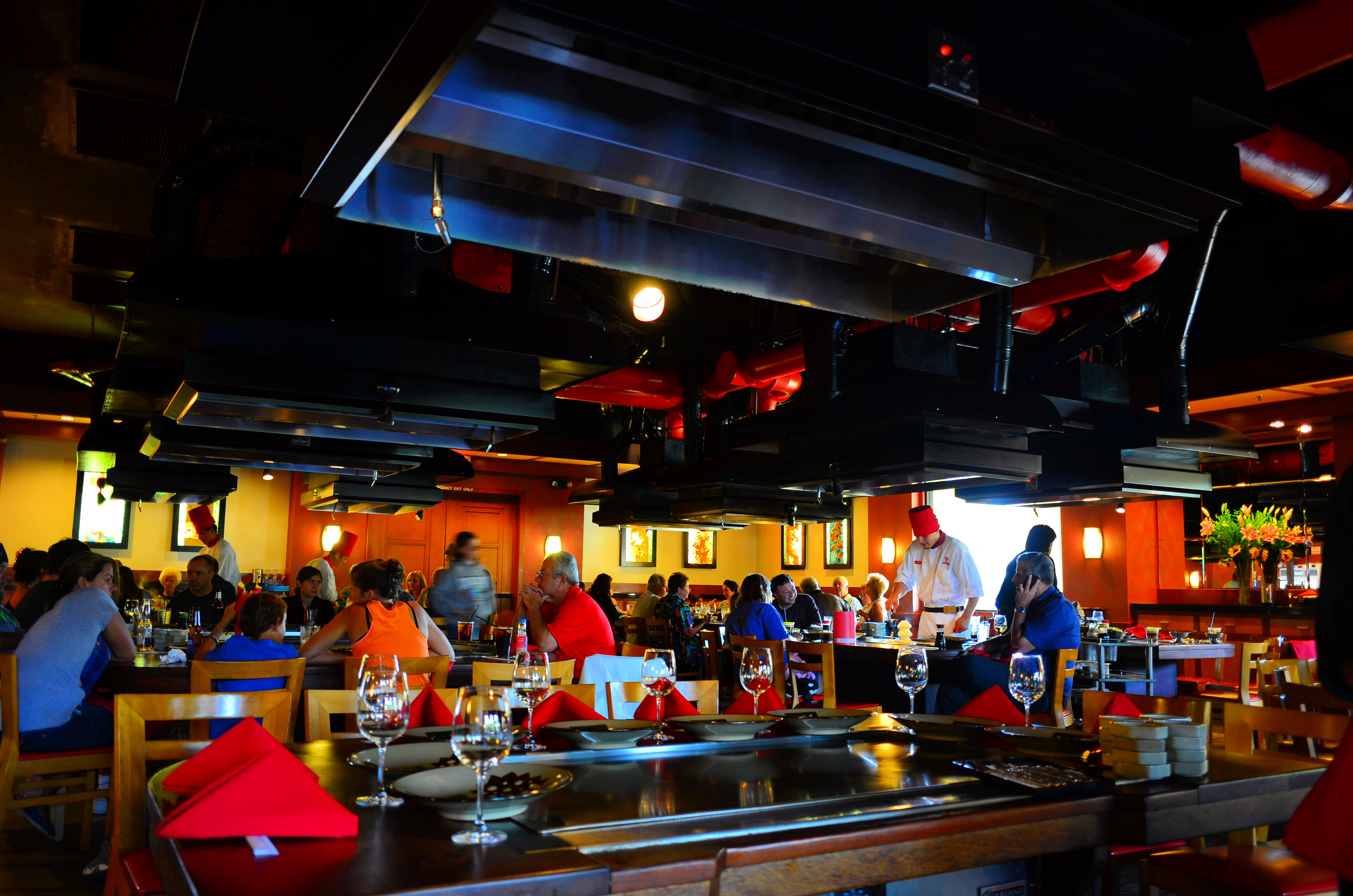 Flare and Ghosts There are no significant ghosts or flare. The worst of it, which takes quite a while to try to excite as shot here, is one cyan blob just outside the light source: Coolpix A flare at f/5.6. bigger. Here's another torture test: a black restaurant with black ceilings and floors, and windows open to the outside: Benihana. Nikon Coolpix A, f/2.8 at 1/15 at ISO 450. © Full-resolution LARGE BASIC JPG file.