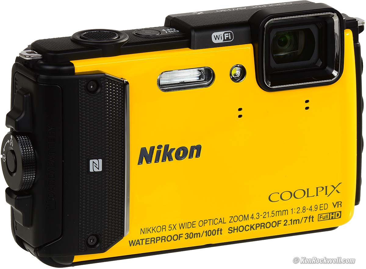 Nikon AW130100'/30m Underwater CameraPresented in ultra-high resolution. Sample Images Intro Specifications Nikon AW130 (in yellow; also comes in black, in blue or previously in red, 7.8 oz./222g with battery and card, about $270) bigger. I got mine at B&H. I'd also get it at Adorama, at Amazon or at Crutchfield. Nikon AW130. bigger.