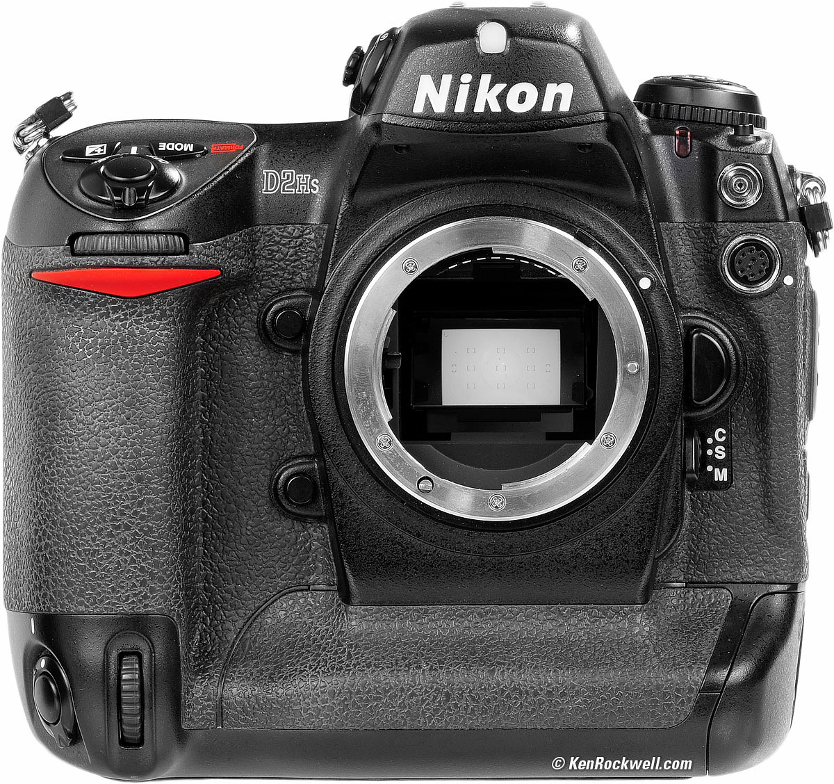 New since D1/D1H/D1X Far superior battery, good for thousands of shots on a charge. Incident light sensor on the front of the prism to help auto white balance. Built-in microphone and speaker with dedicated MIC button for easy voice note recording and playback. Bigger MODE and COMPENSATION buttons on top. Extremely comfortable grip. The D2 series (and its sister the F6) are Nikon's most comfortable cameras. They are a joy to hold.
