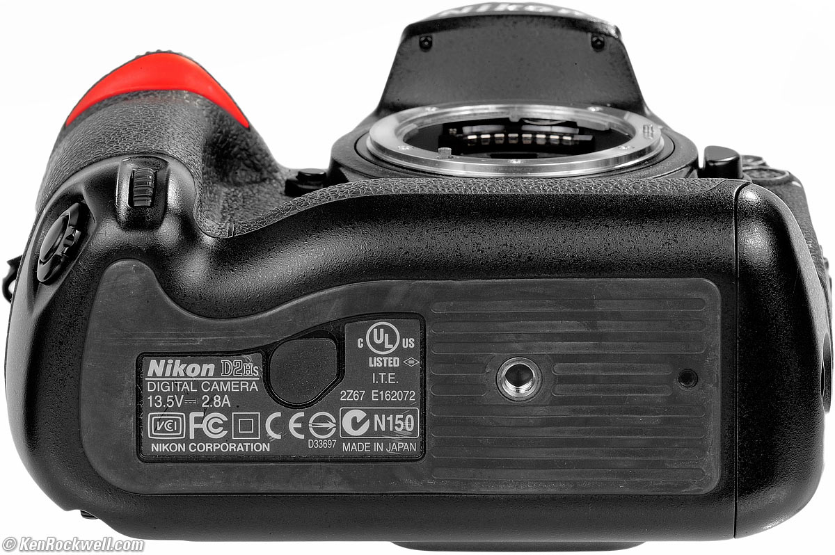 Home Donate New Search Gallery Reviews How-To Books Links Workshops About Contact Nikon D2Hs Intro Specs Performance Compared Usage Recommendations More Nikon D2Hs (takes EN-EL4 battery and one CF card, 44.3 oz./1,256 g with battery and CF card, about $300 used) and 35mm f/1.8 DX. enlarge. I got mine at this link directly to them at eBay (see How to Win at eBay); Amazon may also have them. This free website's biggest source of support is when you use those or any of these links to approved sources when you get anything, regardless of the country in which you live — but I receive nothing for my efforts if you take the chance of buying elsewhere. I get no government hand-outs and run no pledge drives to support my research, so please always use any of these links to approved sources for the best prices, service and selection whenever you get anything. Thanks for helping me help you! Ken. Top, Nikon D2Hs. enlarge.