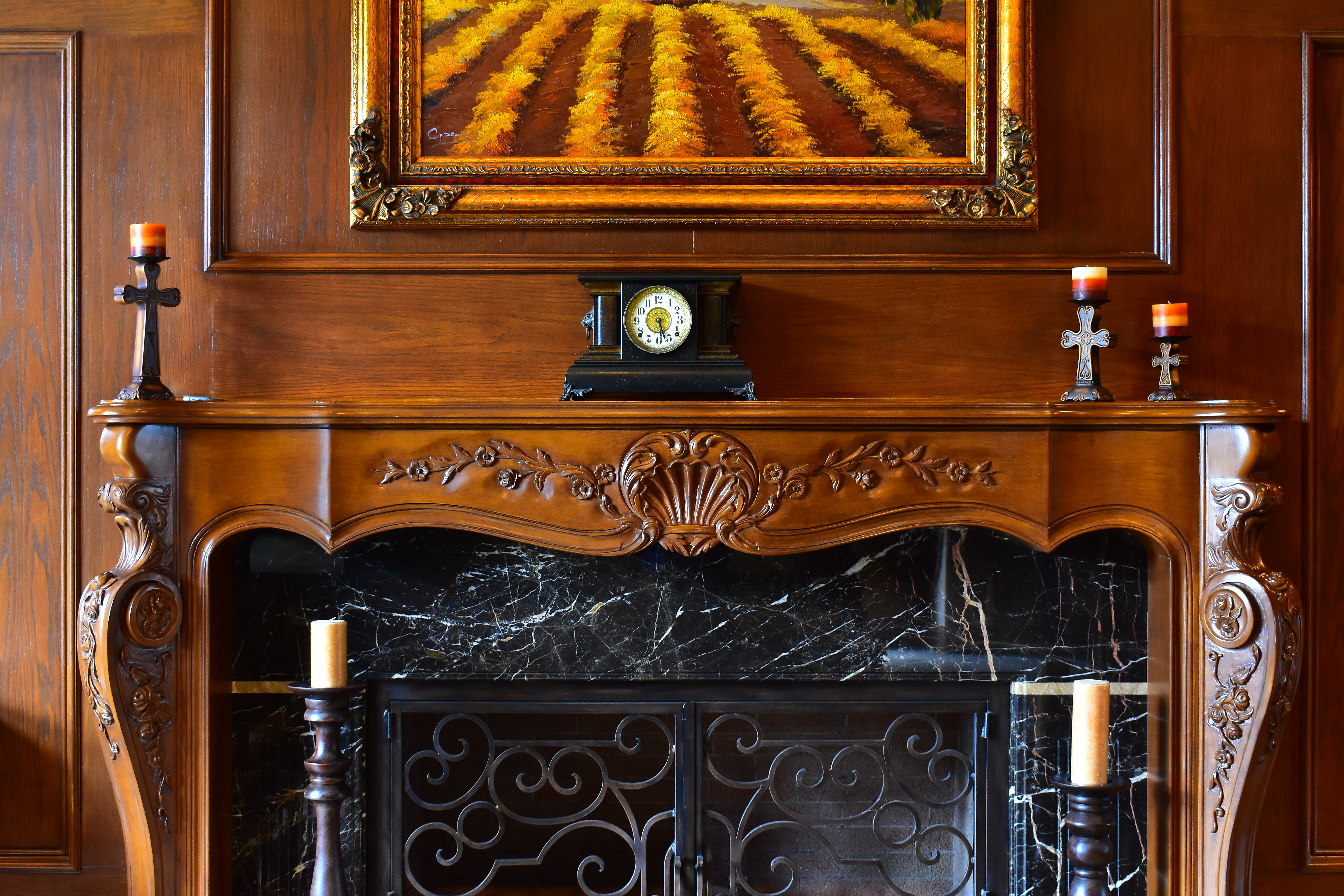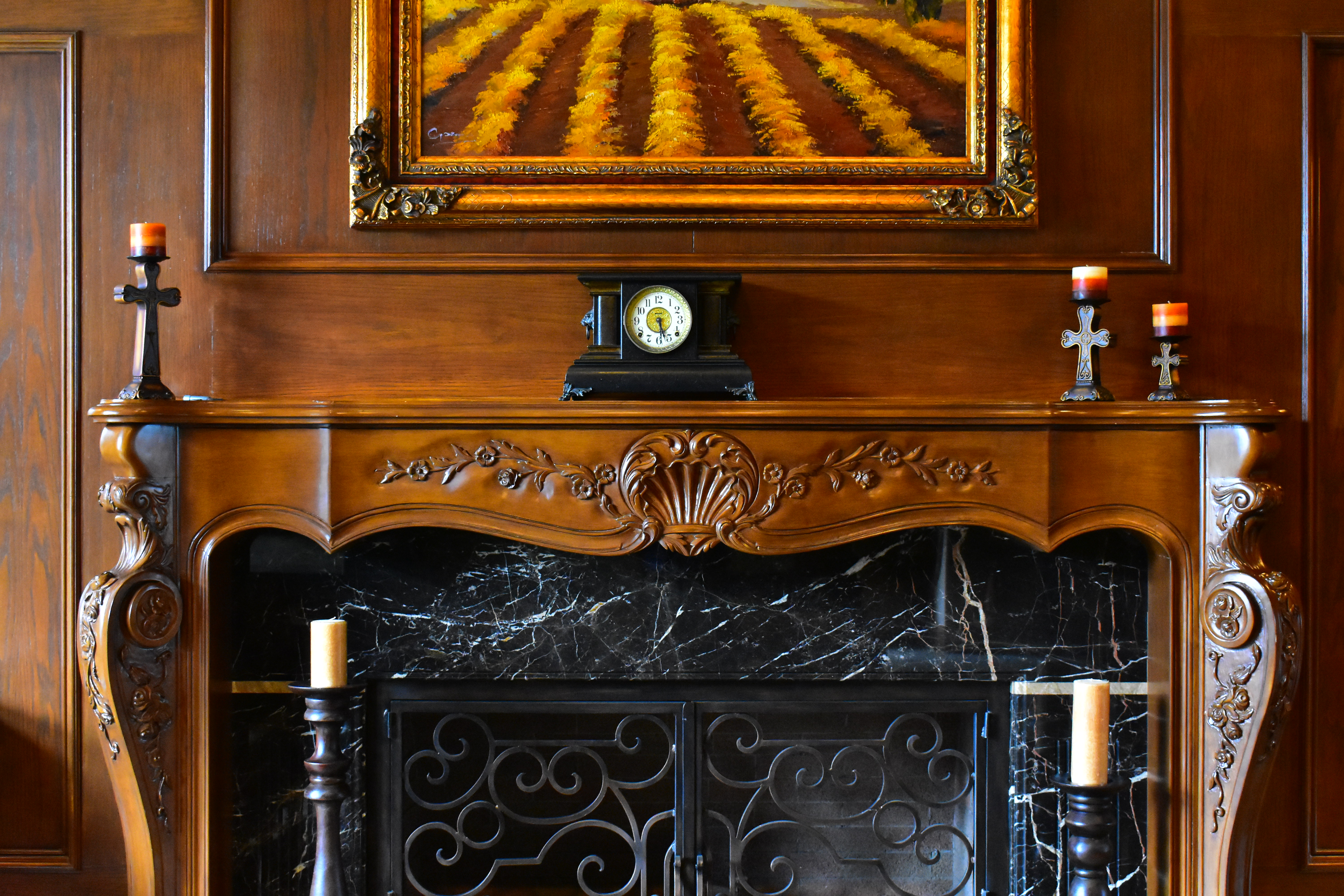 While images at high ISOs look great at reasonable print sizes, the differences are much more obvious at extreme magnifications as shown below; we lose details and subtle textures at higher ISOs. As ISO climbs, we lose grain in the wood, the sparkles in the black wood grain, and everything gets softer. Fireplace bricks inside the grille disappear first on the left then the right, and the dust on grill vanishes.