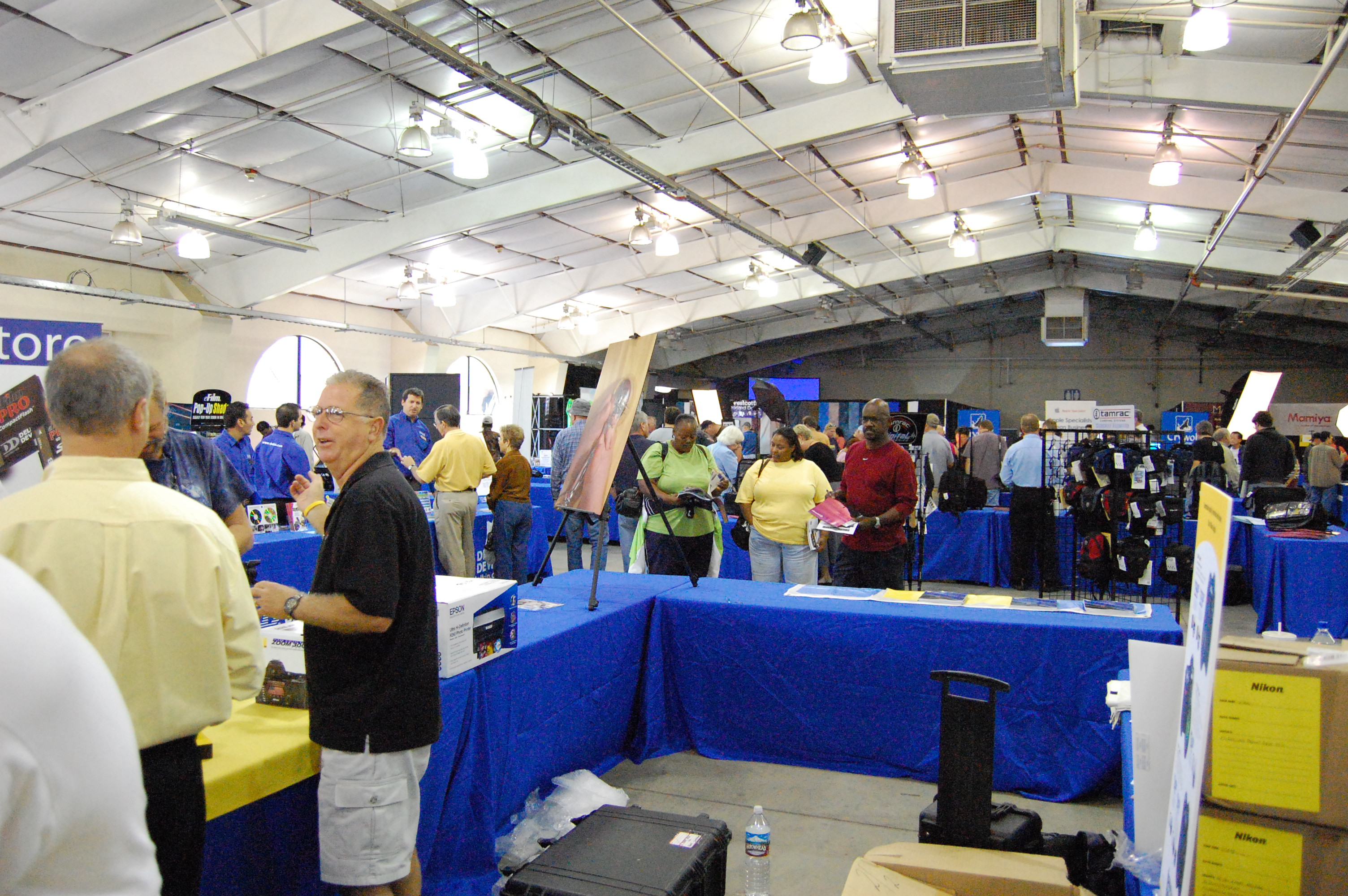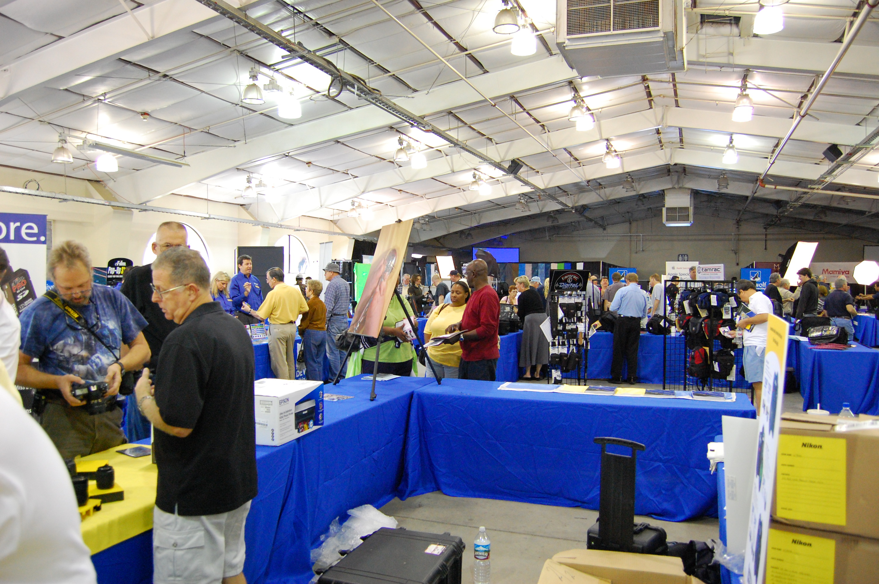 Grab shot on way back from dropping wifes ephemera in car. D40, 18-55 kit lens @ 31mm, 1/30 @ f/4.5, Auto ISO at 320. Program auto, no exposure compensation, auto WB, auto everything, etc. "Auto ISO at 320" means that the D40 bumped the ISO to 320 (from 200) to ensure the shutter speed didn't drop below 1/30. When I'm dropping things back in the car for the wife I have no time to piddle, or I'm chastised. Auto ISO ensures that ISO is high enough to give sharp images, but no higher than necessary to ensure clean, noiseless ones. The D40 adds a second kind of Auto ISO, which confused me since the D40 calls them the same thing in the menus. AUTO ISO in the Shooting (green camera) menu's ISO setting is completely different from the Auto ISO setting I always use in the Custom Setting (red pencil) #10 menu. The Auto ISO setting in the shooting menu allows the D40 to choose the ISO based on the preset scene mode (sports, kids, etc.). This is why it's not available in the regular (P, S, A, and M) modes. I don't use the preset scene modes. There is a trick to turning on Auto ISO in the usual P, S, A and M modes. You have to: 1.) Go into the Setup Menu and select FULL for CSM/Setup Menus. By default the D40 is in SIMPLE, which eliminates the next menu choices! 2.) Go into the Custom Setting Menu, turn AUTO ISO ON (CSM 10) and select any favorite parameters. My Nikon D40 is so smart that if I shoot before the flash recycles, presuming I have Auto ISO activated, my D40 automatically pulls the ISO up to 1,600 (or as needed) to get the one frame where the flash doesn't fire. Wow: it shoots the whole sequence at ISO 200, and the one frame with a flash misfire due to shooting before it recycled shoots at ISO 1,600 as I wanted. High ISOs back to Performance. back to top. High ISOs look great. These snaps are from Nikon's demo back in November 2006. I'll have real examples from mine up later. Every thing looks perfect through ISO 800. Full image, Nikon D40 at ISO 3,200. (click for original) As you can see, at normal sizes it looks great even at ISO 3,200. The next shots are blown up to 100% pixel-to-pixel on your screen, which is the same as making 20 x 30" prints. D40, 100% Crop at ISO 800. (click for original) ISO 800 from the D40 looks like ISO 100 from a point-and shoot. Here's the original JPG file direct from the D40 at ISO 800. D40, 100% Crop at ISO 1,600. (click for original) ISO 1,600 gets a very little bit noisier, still much better than a compact digital camera at ISO 200. I'd shoot ISO 1,600 on a D40 anytime I need it. Here's an original JPG file direct from the D40 at ISO 1,600. 100% Crop at ISO 3,200. Of course this lets you see things as you would on a 30" wide print! (click for original) ISO 3,200 is noisy. It works great when you need it; you just don't want to shoot this way in daylight. Here's an original JPG file direct from the D40 at ISO 3,200. Oddly, ISO 3,200 reads as ISO 1 in my copy of iView. This is copying and using the JPGs direct from the D40. I don't use Nikon software for anything, and if I downloaded using the Nikon software it may tweak the EXIF data to fix that. Data back to Performance. back to top. It downloads at 330 MB (480 large basic JPG shots) per minute with my 2 year old Lexar 1GB 32x SD card, which is fast. I can suck in a day's shooting in a few minutes, and a fast shoot in seconds. It transfers 380MB (520 basic large JPG images) in a minute from my recent 2GB SanDisk Extreme III SD card. Clock Setting and Accuracy back to Performance. back to top. I figured out how to set the clock as soon as I turned on my D40 the first time. Easy. It ran fast at a rate of about 27 seconds per month for the first month, and after three months it was running at an average of 47 seconds fast per month. . It was two and one-half minutes fast on March 11th, 2007 when I set it to daylight time and was dead-on when set the day I got it on December 3rd, 2006. It's trivial to change back and forth to and from daylight time. There are daylight time and time zone settings which don't affect the setting of the seconds. This normally would be important, but since my D40 keeps such awful time (I have mechanical watches which keep better time) `it's not that critical. Aliasing (Moiré) back to Performance. back to top. Yes, on some fine repeating patterns. The D50 and D70 also did this, as does my Canon 5D. Printing back to Performance. back to top. See also How to Get Great Prints. I love Costco. We were out running around yesterday, I popped my card in their machine, and I had great 12 x 18" prints in my hand before we got home! Hint: Costco's kiosks aren't for sorting out your good shots. The kiosks can't show you anymore than a tiny thumbnail on a dim, low-resolution screen, so I can't tell sharpness or exposure. I used my D40 and it's stellar screen to select the ones I wanted, and marked them on paper. It's easy to do this on the D40: I sorted through 800 shots while sitting in the parking lot at Costco, with an impatient wife wanting to head in. It's easy to select through that many shots on Costco's kiosks if you know the file numbers you want in advance. Costco, Local Photo Printing Capital. 800 kB original. OK, you made me say Costco. Here's a grab shot as the wife went ahead. Yes, this is an excellent kit lens, and remember that it's with the lens wide open so the sides aren't supposed to be in focus. (AUTO ISO 720, f/3.5 @ 1/60, 18-55mm @ 18mm.) It still looks great, and Auto WB and Auto ISO worked perfectly. You easily can correct the distortion of the shelf support on the right in Photoshop :