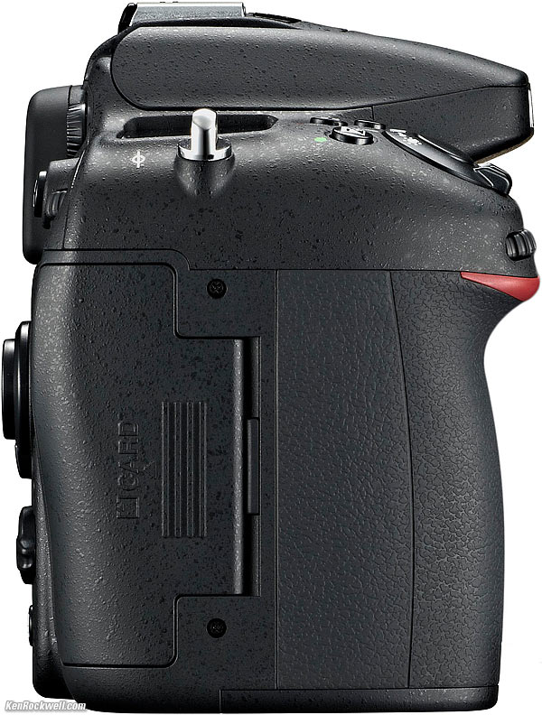 Weight top 27.295 oz. (773.8g), measured with battery, strap rings and one card. Nikon specifies 27.5 oz. (780 g) with battery and card, but no caps or straps. Nikon specifies 23.8 oz. (675 g), stripped naked. (D7000 is 24.3 oz. (690 g), stripped naked.)