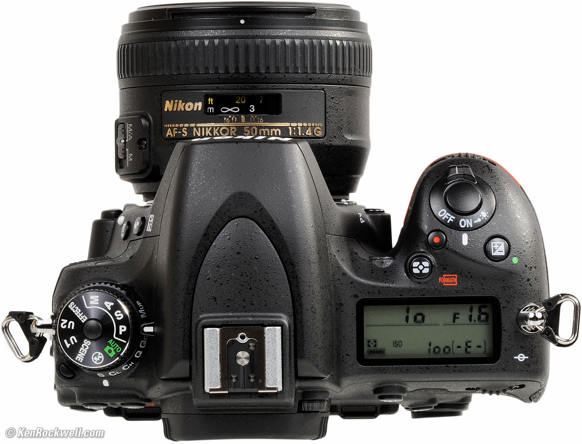 Ergonomics performance top It's a small camera as FX Nikons go. The grip is very thin, but still fits well in my big American hands. Oddly when shifting Program mode, if you run the dial more clicks past where it can go with the available apertures on your lens, instead of simply ignoring the extra clicks, it counts them and you have to run it back the same number of phantom clicks get back to where you can shift the program again. If Auto ISO is on (I always use it), Program shift will simply stop when you get to the slowest shutter speed you have programmed in Auto ISO. It won't let you shift to slower shutter speeds as it should; you have to turn off Auto ISO (press ISO and turn front dial) to let you shift past that speed. The top LCD is tiny.