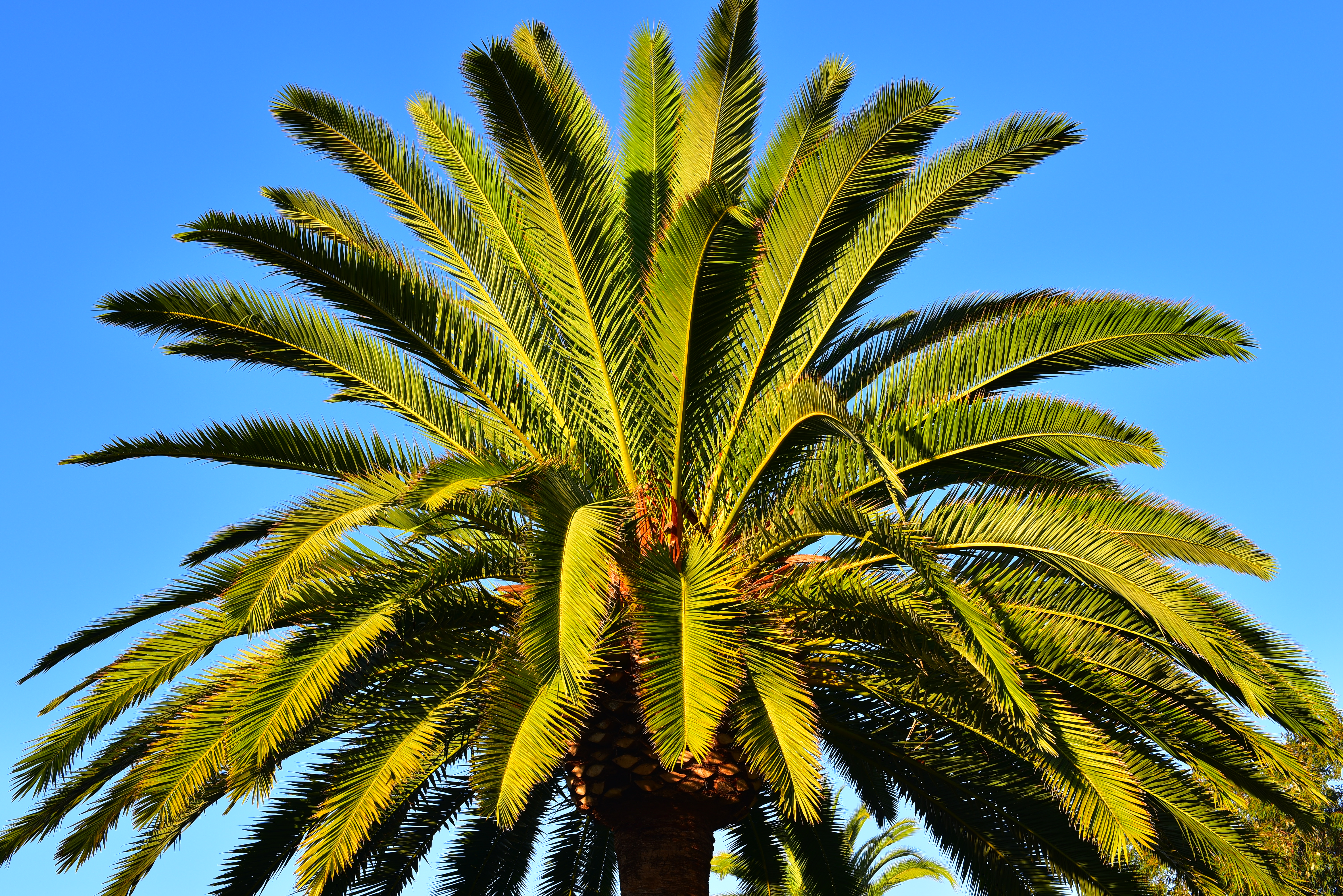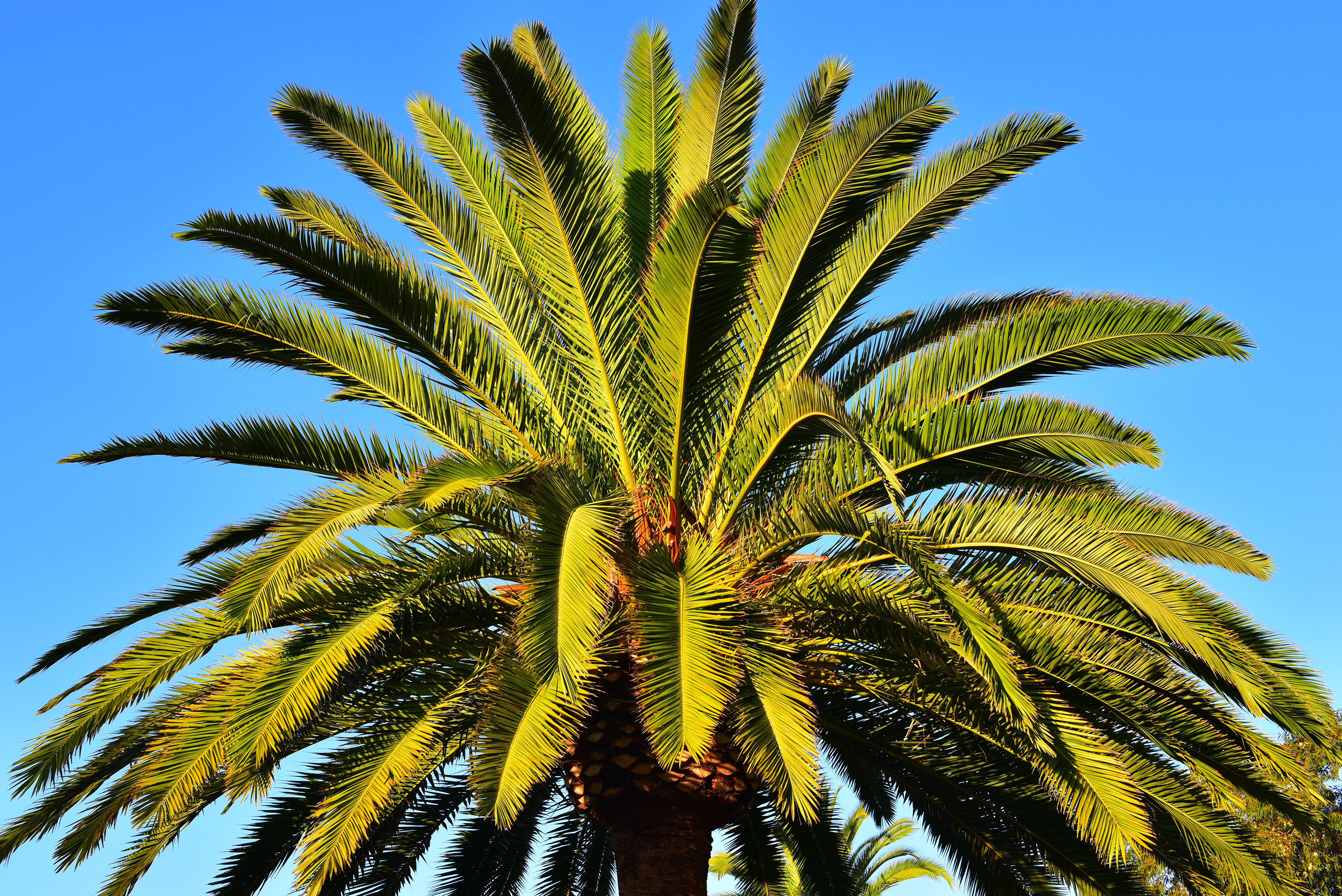 High ISOs performance top Can you remember 2006, back when we avoided ISOs like 3,200 because they looked ratty, noisy, blotchy and off-color, even seen at small sizes? Today the pictures look the same at all these crazy ISOs, a real testament to the incredible performance we take for granted today. Today, even ISO 12,800 looks the same as ISO 100, with the only difference being a little more noise replacing what used to be legitimate fine textures of the subject. Otherwise, the shadows and highlights and colors and everything look the same. To see the tiny differences between these today, download the camera-original files and compare them at home. You'll see a little less detail in the high ISO shots, as well as less texture. Look for the dewdrops on the palm fronds in these photos made at dawn: the dewdrops are smoothed-over by the noise reduction at the highest ISOs. Look also at the dark trunk of the palm, which becomes much softer at the highest ISOs. These minor differences don't matter: a sharp, in-focus and unblurred photo at ISO 12,800 with the D750 is always going to be sharper than one with less depth of field or blurred from a same shot shot at a slower ISO if things are moving. If you need ISO 12,800, use it. I didn't go above ISO 12,800 since this is daytime and ran out of shutter speeds at f/11, at which I made all these shots. I didn't want to stop down further as diffraction would have dulled the higher ISO images, and a neutral-density filter could have shifted color and contrast slightly. These are from a tripod at f/11 with the 50/1.4G. Click any for its 10 MB camera-original LARGE NORMAL Optimum Quality JPG file. The screen images below aren't in high-resolution like everything else on this page in the interest of fast page download speeds; click each for the original files if you need all the details. Click any for its 10 MB camera-original LARGE NORMAL Optimum Quality JPG file. The biggest visible difference is in the dew drops on the palm fronds and the detail in the dark trunk at the bottom. In case you think that the dew evaporated by the time I took the ISO 12,800 shot, look at the EXIF times and you'll see that I went back and made the ISO 50 shot last.