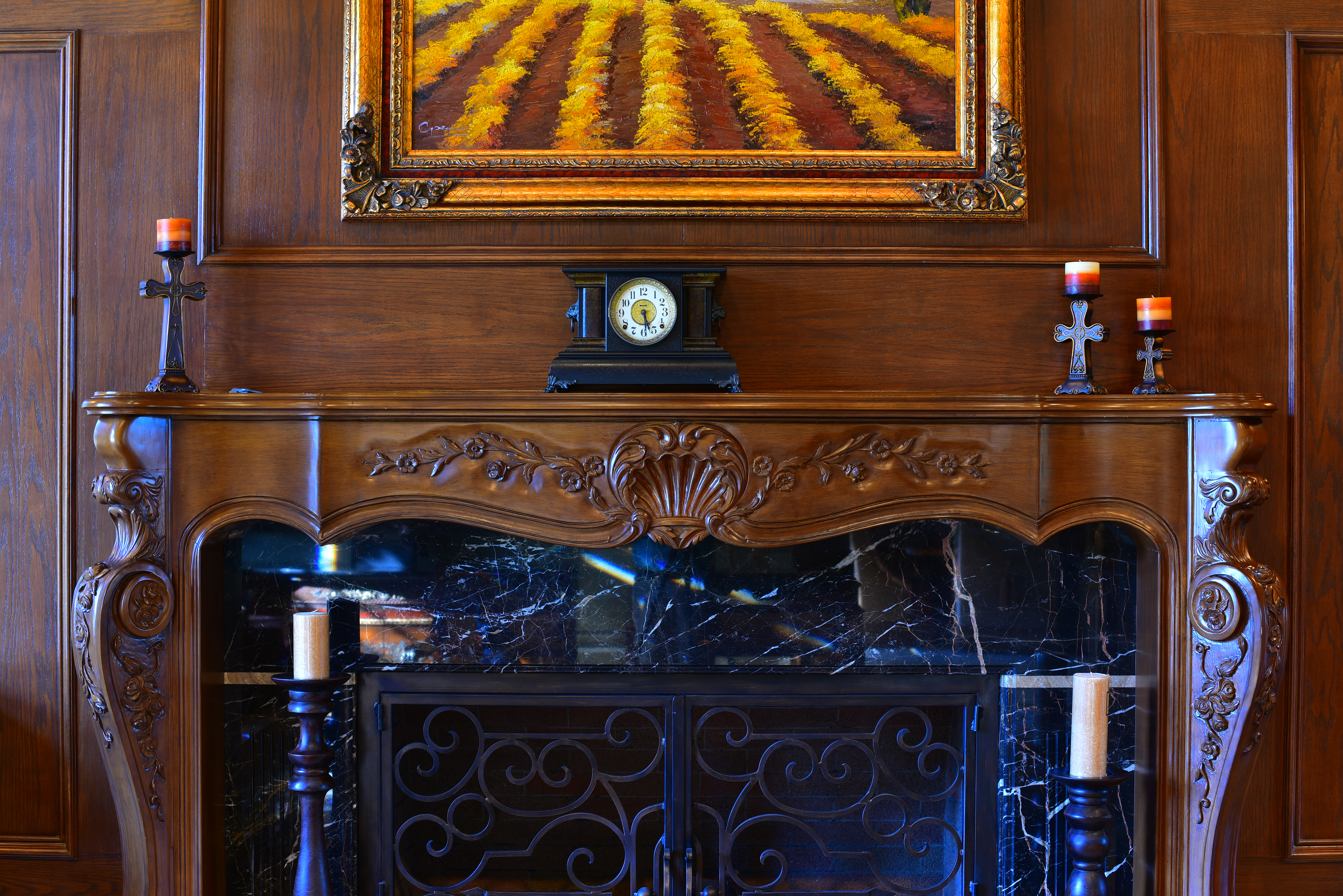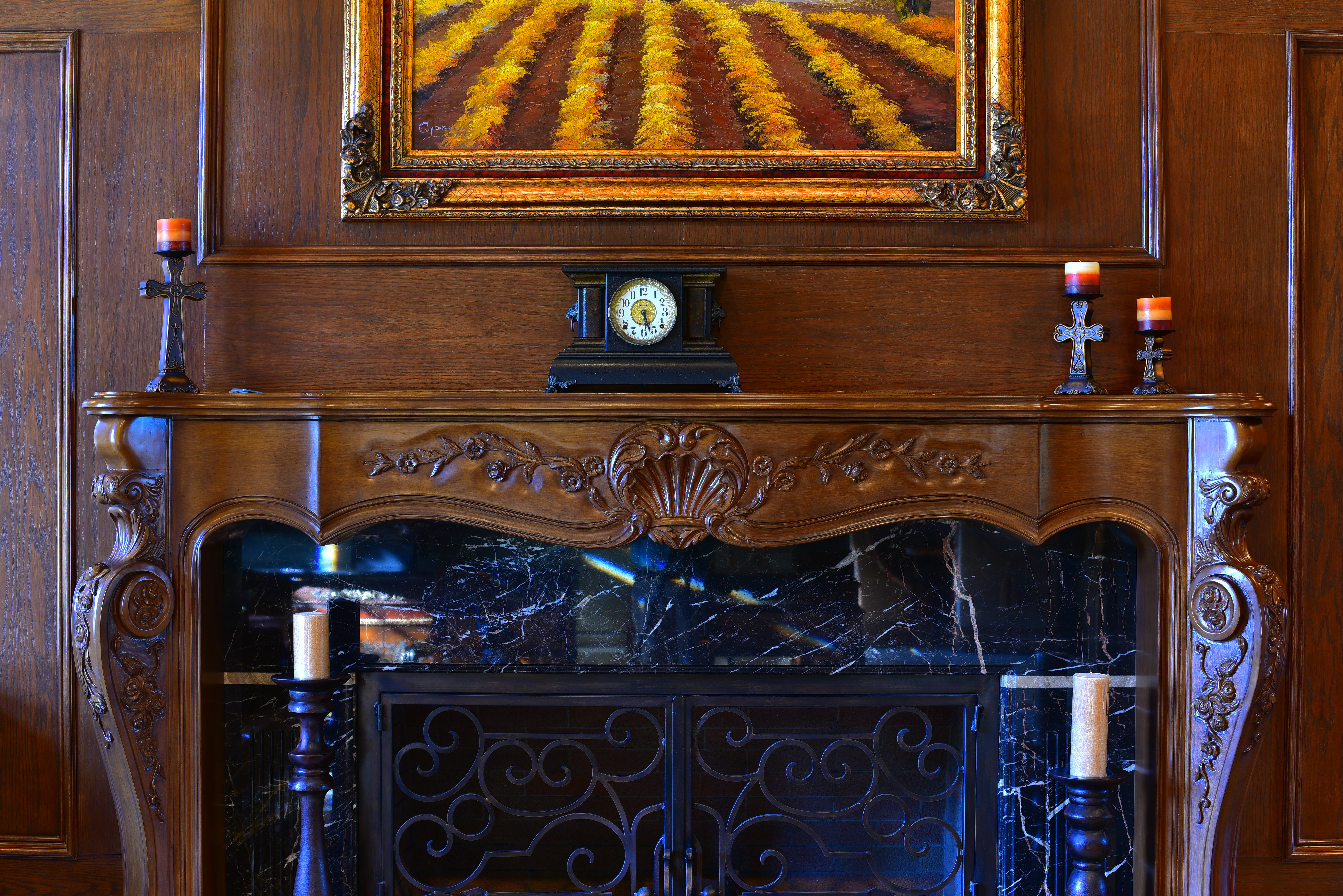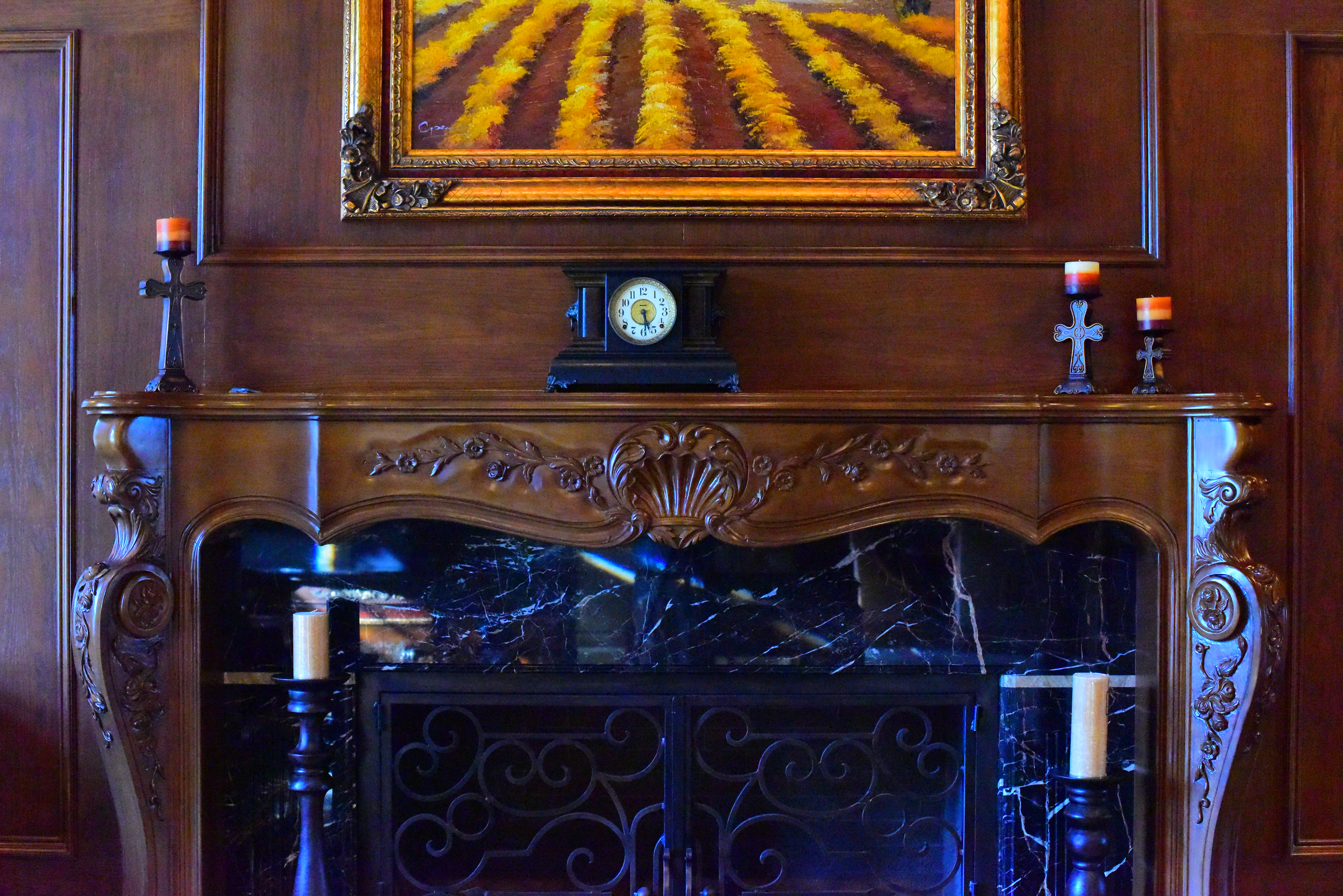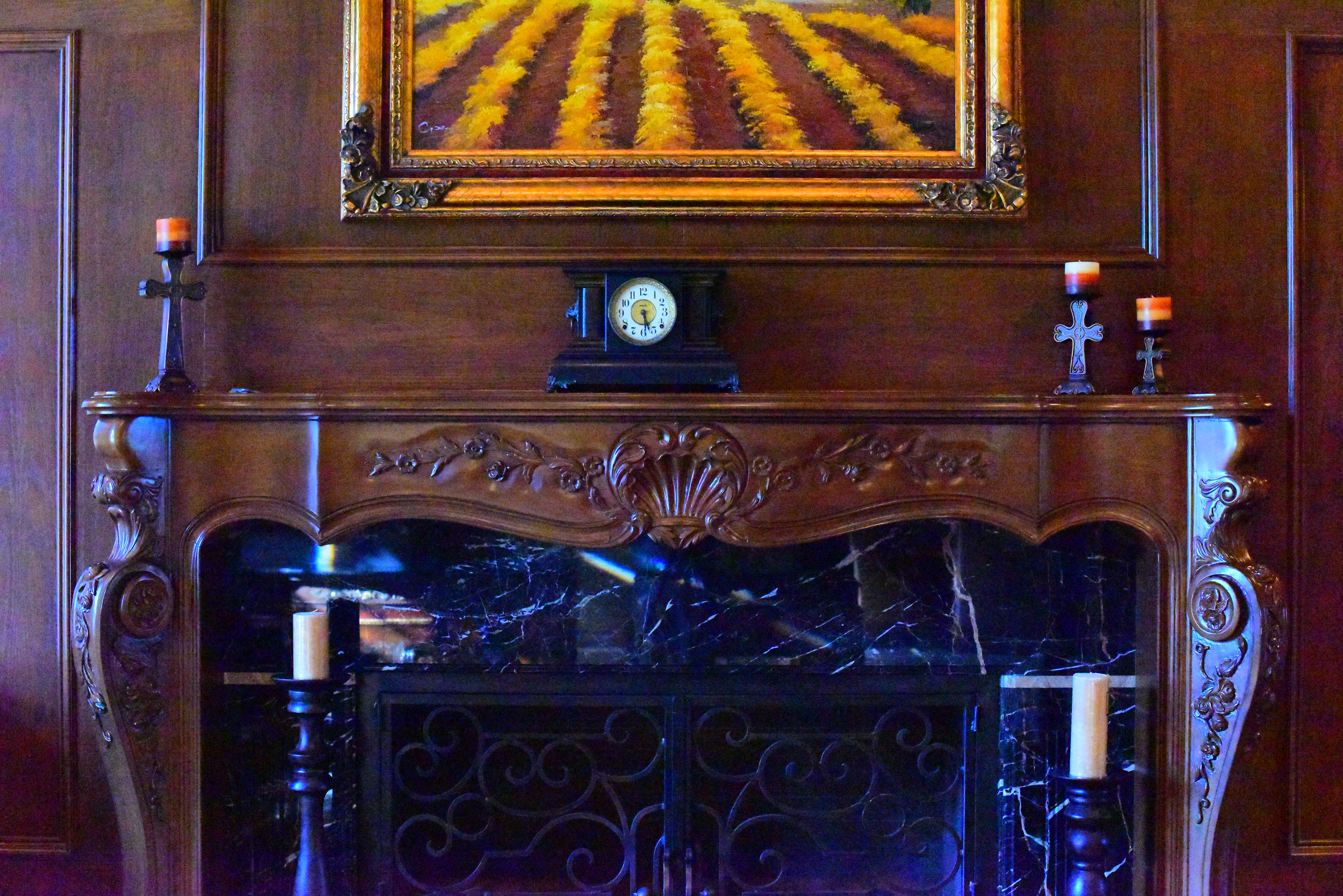 Crops from aboveThese are 600 x 450 pixel crops from the original images above. They will vary in size to fit your browser window; if they are about 6" (15cm) wide on your screen, the complete images would print at 50 x 75" (125 x 185 cm) at this same extreme magnification. if they are about 12" (30cm) wide on your screen, the complete images would print at 100 x 150" (2.5 x 3.75 meters) at this same extreme magnification. While images at high ISOs look great at reasonable print sizes, the differences are much more obvious at extreme magnifications as shown below; we lose details and subtle textures at higher ISOs. As ISO climbs, we lose grain in the wood, the sparkles in the black wood grain, and everything gets softer. Fireplace bricks inside the grille disappear first on the left then the right, and the dust on grill vanishes. Click any for the same camera-original © files as above to explore on your computer (mobile devices rarely show the full resolution files properly): As expected, ISO 32 (Lo-1) is sharper than ISO 64 or any other setting. Sharpness and fine details soften as ISO increases, and noise becomes stronger at ISO 25,600 and 51,200. Noise isn't apparent up to about ISO 12,800; noise reduction smooths it over — along with the details.