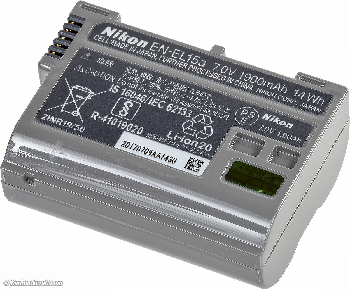 This is a backwards-compatible newer version of Nikon's very common EN-EL15. Rated up to 1,840 shots at full resolution or approximately 70 minutes of video on a single charge (CIPA). Fill the MB-D18 grip with extra batteries and get up to 5,140 shots (CIPA).