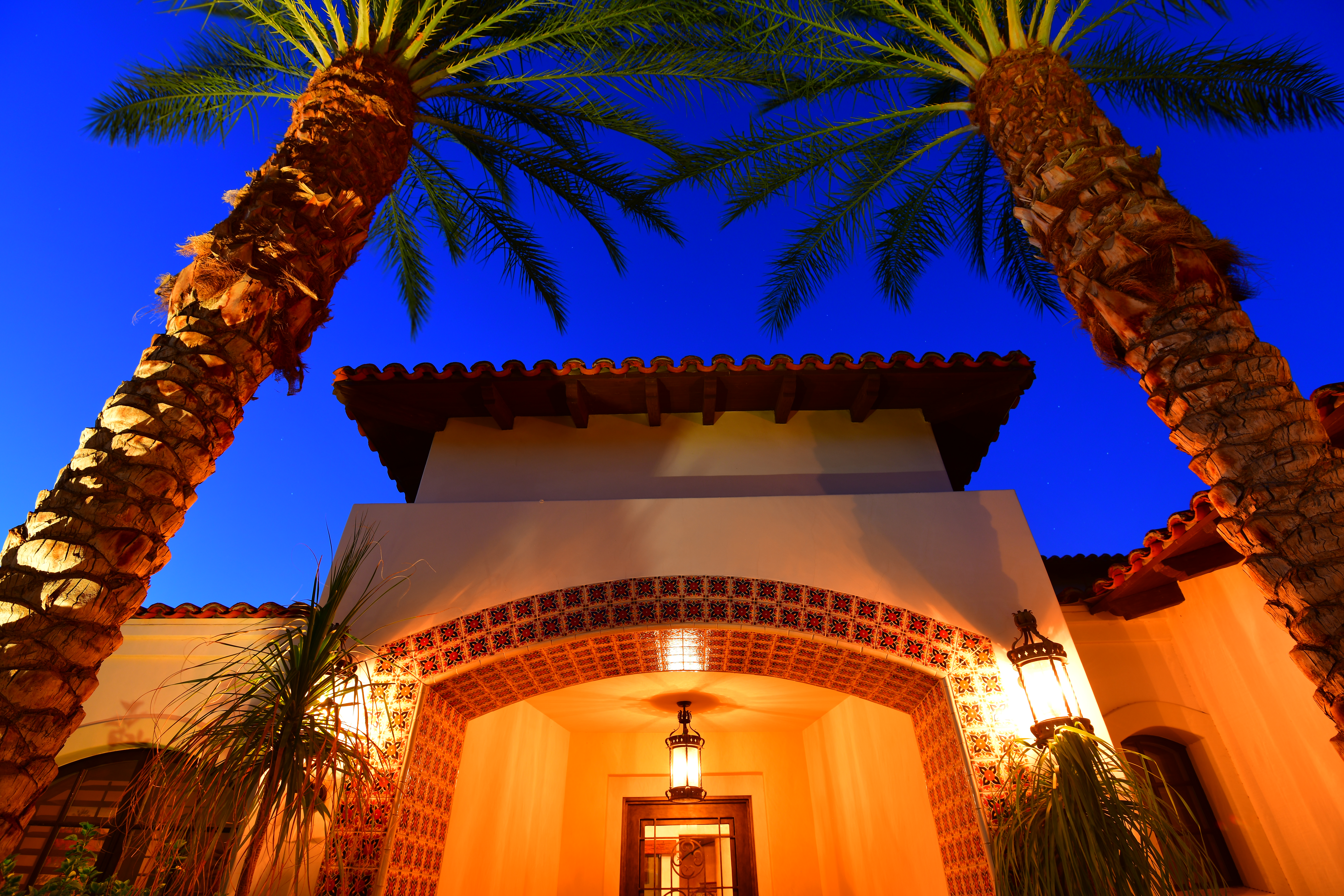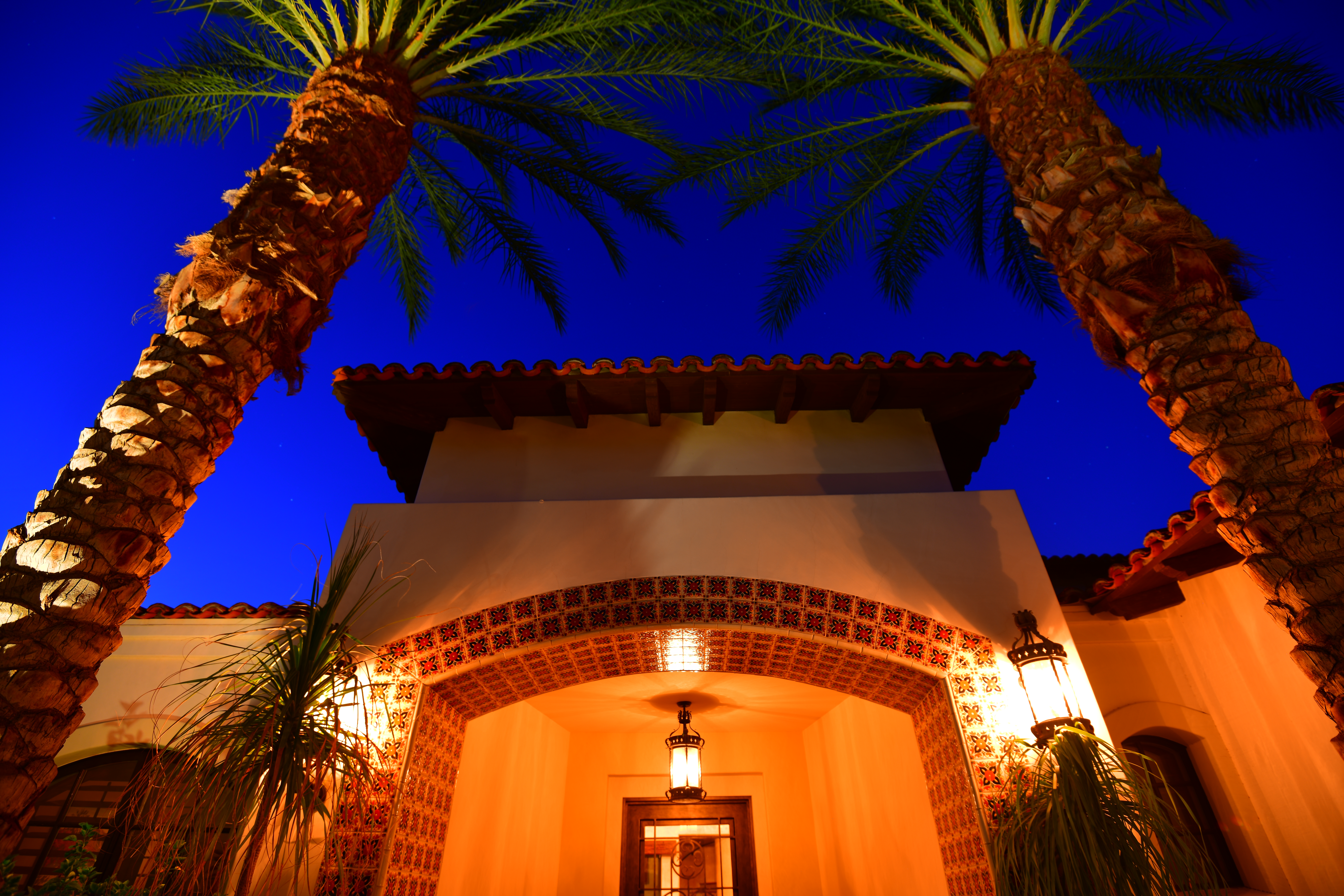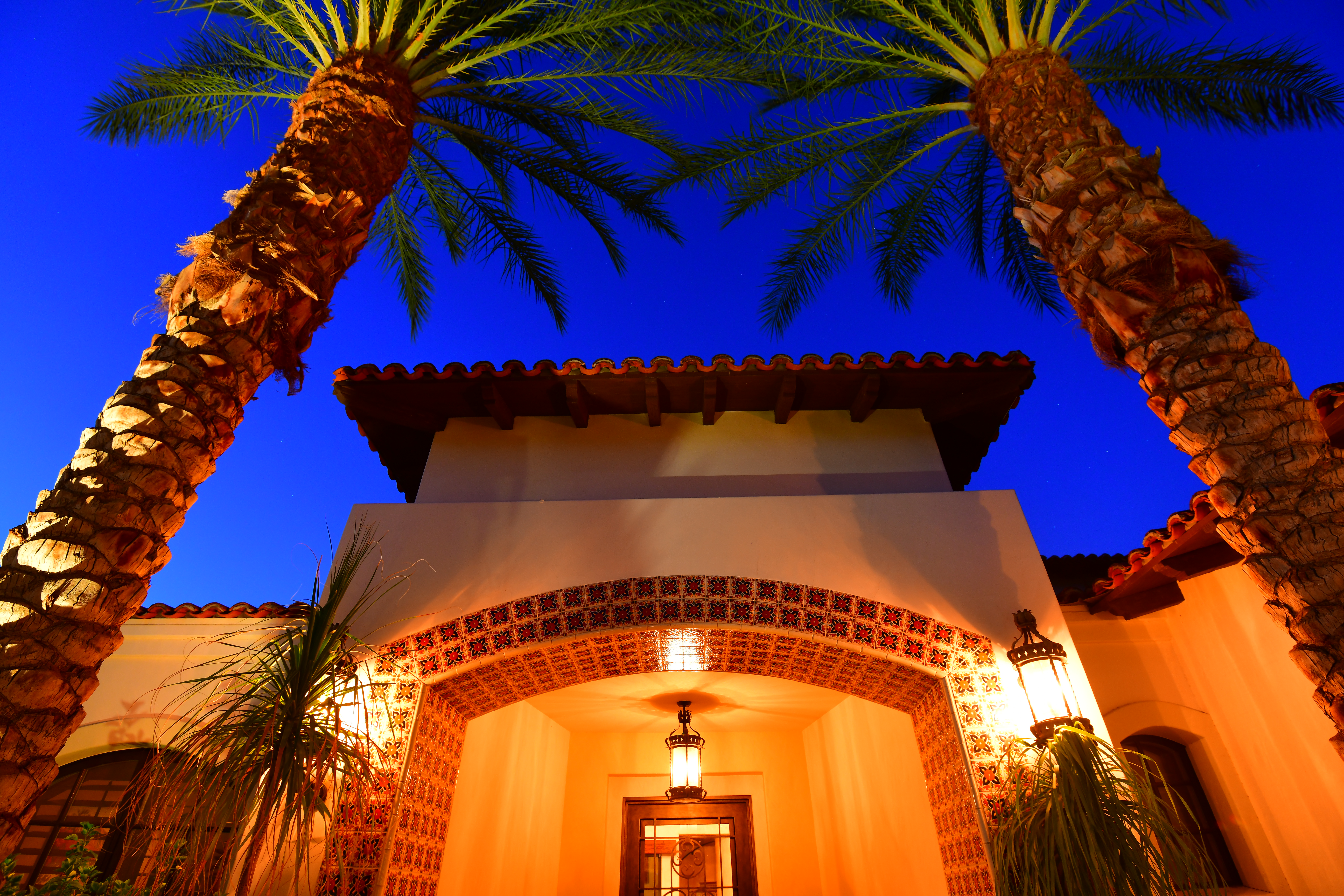 Day turns to Night in the Desert, 26 September 2017, 6:59 PM. Nikon D850, Nikon 28-300mm VR at 35mm, 1/20 hand-held at f/3.8 at ISO 10,000. bigger (only the palm in the foreground is in focus). The D850 captures extraordinary tone and color under any lighting condition. Bravo!
