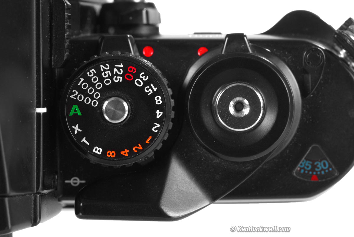Utilisation top Intro Spécifications Performance Utilisation Recommandations Contrôles du Nikon F3. enlarge. Tournez l’interrupteur autour du déclencheur d’obturateur pour découvrir le point rouge. C’est la mise sous tension. Je laisse l’interrupteur sur cette position tout le temps. Des mois plus tard, mes piles sont encore correctes. Le F3 se réveille uniquement si vous touchez le déclencheur. L’interrupteur similaire autour de la molette des vitesses de l’obturateur est l’armement du retardateur. Si vous voyez le point rouge près des vitesses d’obturateur, vous obtiendrez le retardateur jusqu’à ce que vous cachiez le point rouge.
