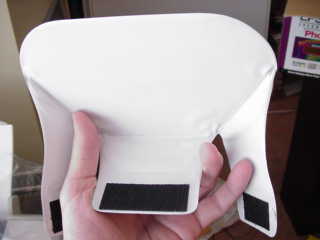 Diffusers Use a diffuser or a white card above the flash to soften the light for a natural look. Do this all the time, even for fill flash. Diffusing your fill flash will give a natural look much better than the harsh fill of the direct flash. This way you won't have to dial down the fill level as many people who shoot bare flash have to. By having to dial down the fill level to hide the fill they also reduce its effectiveness. Using a diffuser instead to soften the fill effect allows you to retain the correct fill level. The Lumiquest pocket bouncer This diffuser for about $20 (or make one yourself from a white index card and rubber band) will make a huge improvement in your flash photos. you can get it here. Get a piece of white cardboard and tape it to the flash somehow with the flash pointed straight up. Angle the board at 45 degrees so the light bounces off of it. Easy. The bigger the better. 8-1/2 x 11" is about as big as you dare go for practicality. The point of all this is to light up the white card so that the source of the light, from the subject's point of view, is bigger than just the little flash head. A bigger light source makes softer shadows. As an example think of the sharp shadows seen on a sunny day versus the soft shadows seen during overcast.