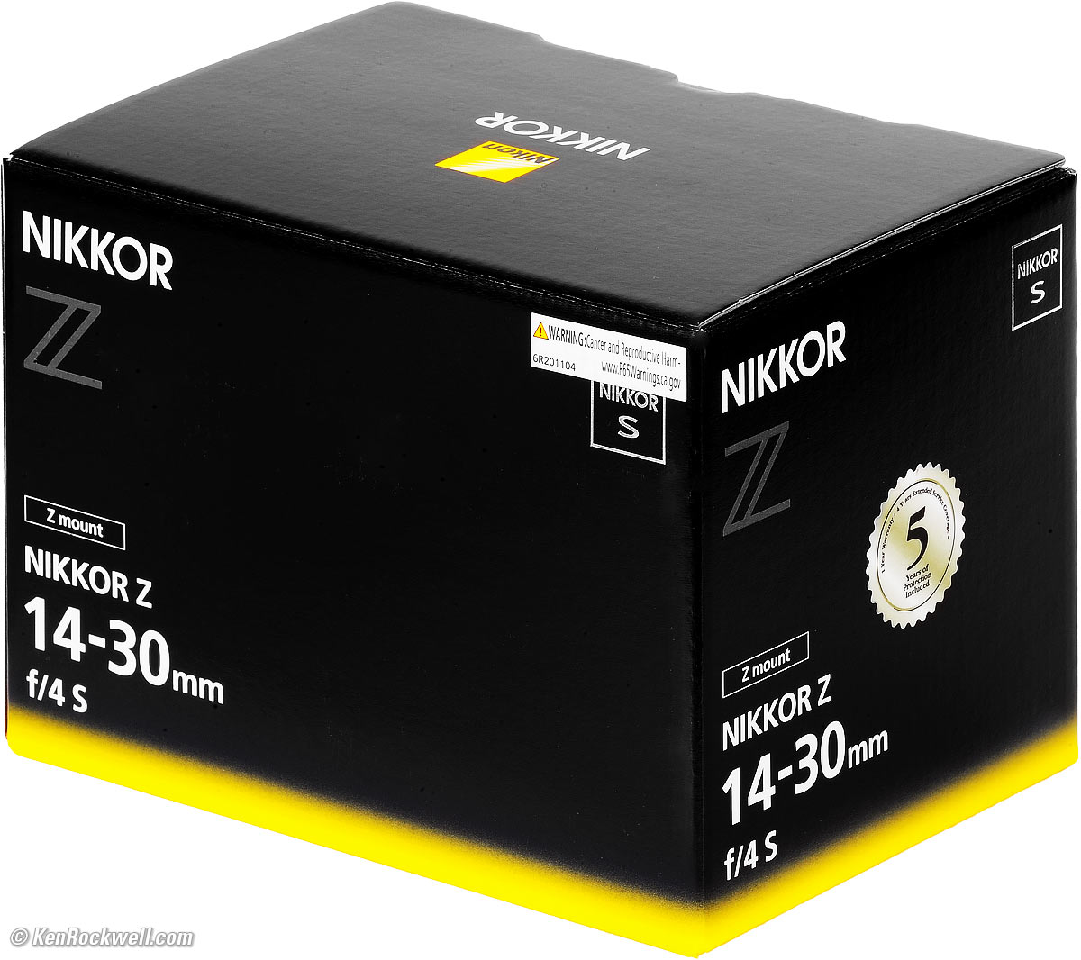Getting a Legal U. S. A. VersionTop Sample Images Intro Compatibility Specifications Unboxing USA Version I got my 14-30mm at Adorama. I'd also get it at Amazon, at B&H or at Crutchfield, or used at eBay if you know How to Win at eBay. This section applies in the U. S. A. only. In the U. S. A. you need to have a U. S. A. Warranty card similar to this inside your box (Nikon dropped 5-year warrabties as of 2021, now we only get one year): Nikon USA Warranty Card. bigger. The card and warranty is only valid if the serial number matches the one on your lens exactly. If not, you got ripped off with a gray market version from another country. (The serial number on the box doesn't have to match, but if it doesn't it means you bought from a shady dealer who took lenses out of boxes and then resold them as new.) This is why I never buy anyplace other than from my personally approved sources. You just can't take the chance of buying elsewhere, especially at any retail store, because non-U. S. A. versions have no warranty in the U. S. A., and you won't even be able to get firmware or service for it — even if you're willing to pay out-of-pocket for it when you need it! Nikon U. S. A. enforces its trademarks strictly. It's unlikely, but possible that US customs won't let your camera back in the country if you bought a gray-market version in the U. S. A., carried it overseas, and try to bring it back in. (If you take the chance of buying one overseas, be sure you have a receipt to prove you bought it overseas and be prepared to pay duty on it.) If a gray market version saves you $400 it may be worth it, but for $200 or less I wouldn't risk having no warranty or support. Always be sure to check your box while you can still return it, or just don't buy from unapproved sources or at retail so you'll be able to have your camera serviced and get free updated firmware as needed. Get yours from the same places I do and you won't have a problem, but if you take the risk of getting yours elsewhere, be sure to check everything while you still can return it.