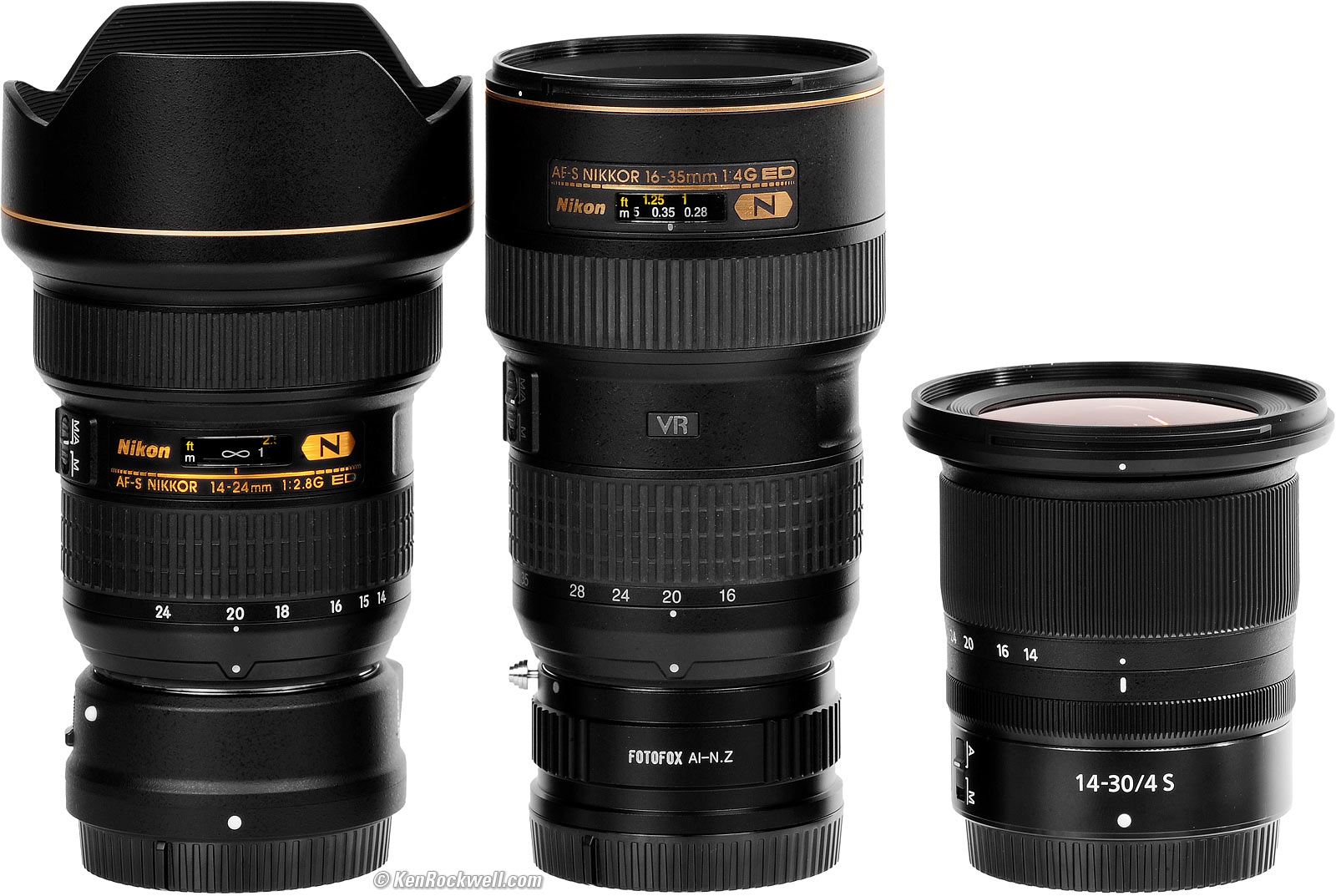 Versus Nikon Ultrawide Zooms14-24mm f/2.8 AF-S on FTZ, 16-35mm f/4 VR on Chinese adapter & 14-30mm f/4 Z. bigger.