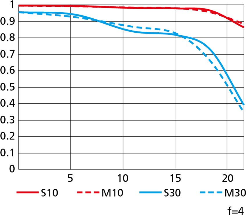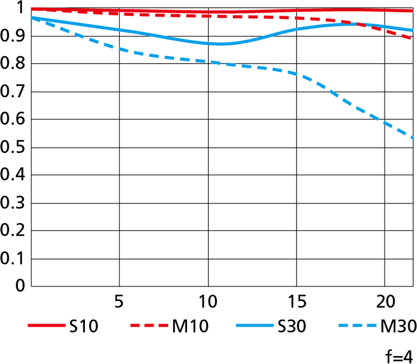 Nikon's MTF charts at 10 cyc/mm and 30 cyc/mm.