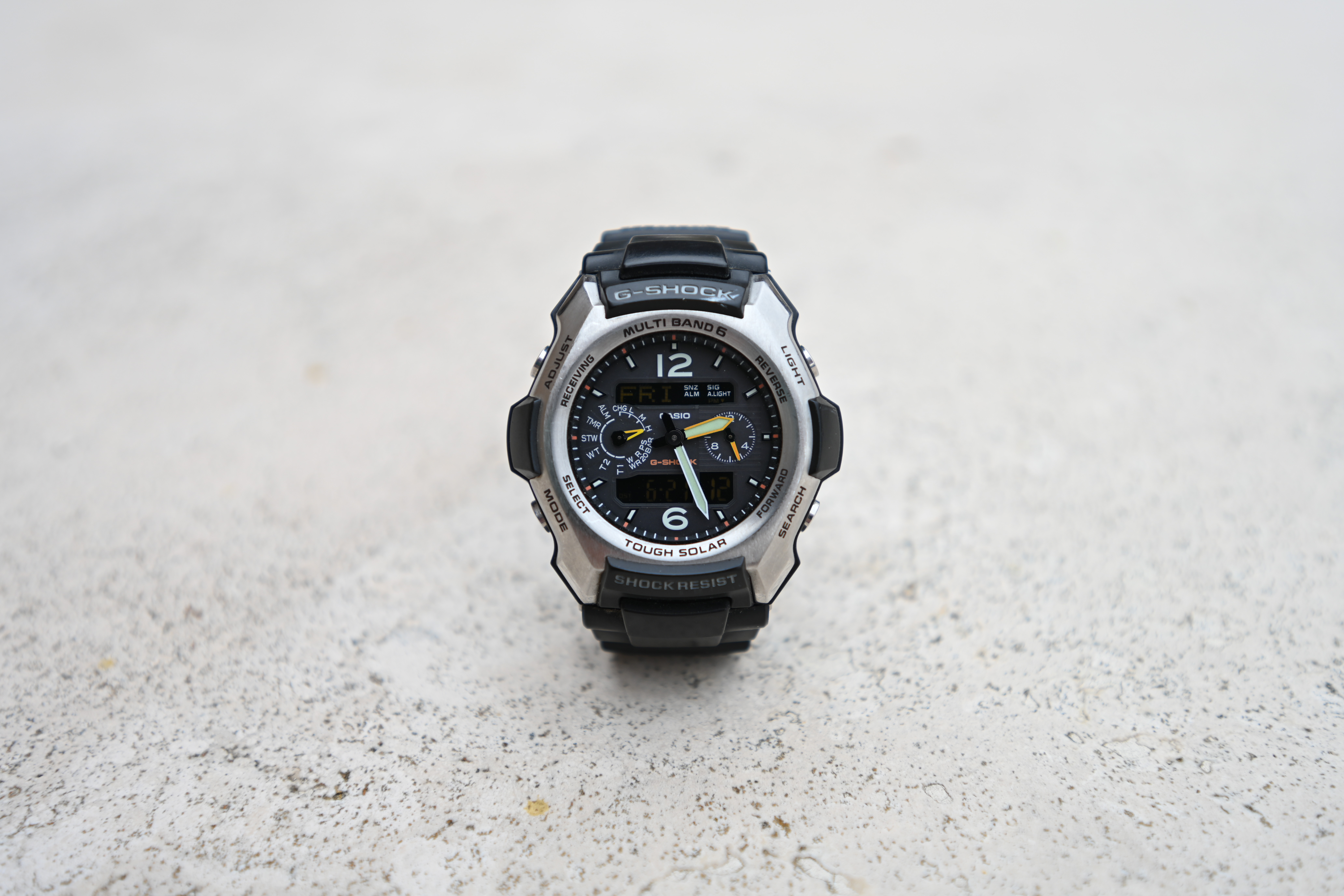 At f/8Casio G-Shock Solar Atomic Watch at close-focus distance at 30mm, 21 June 2019. bigger or camera-original © file.