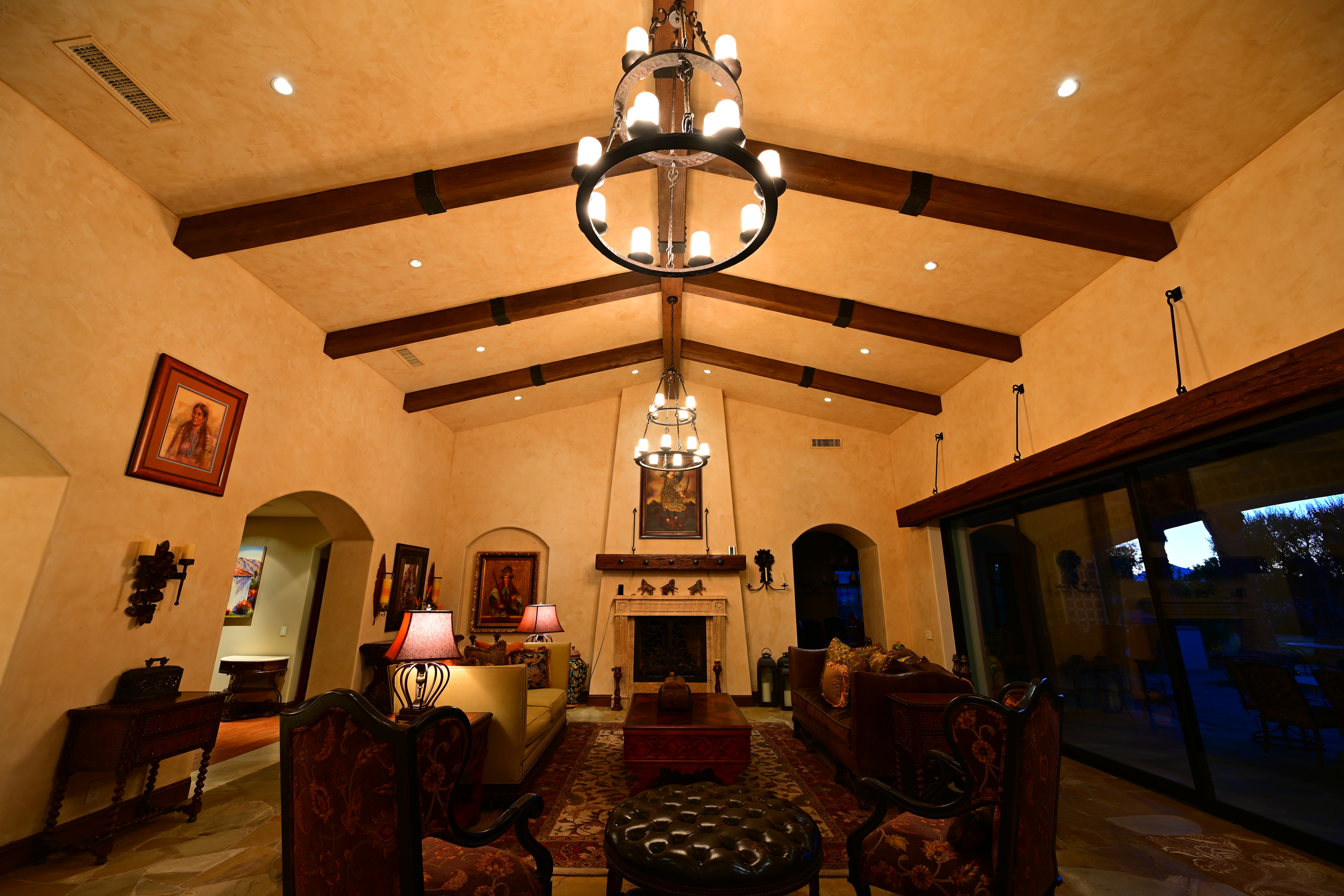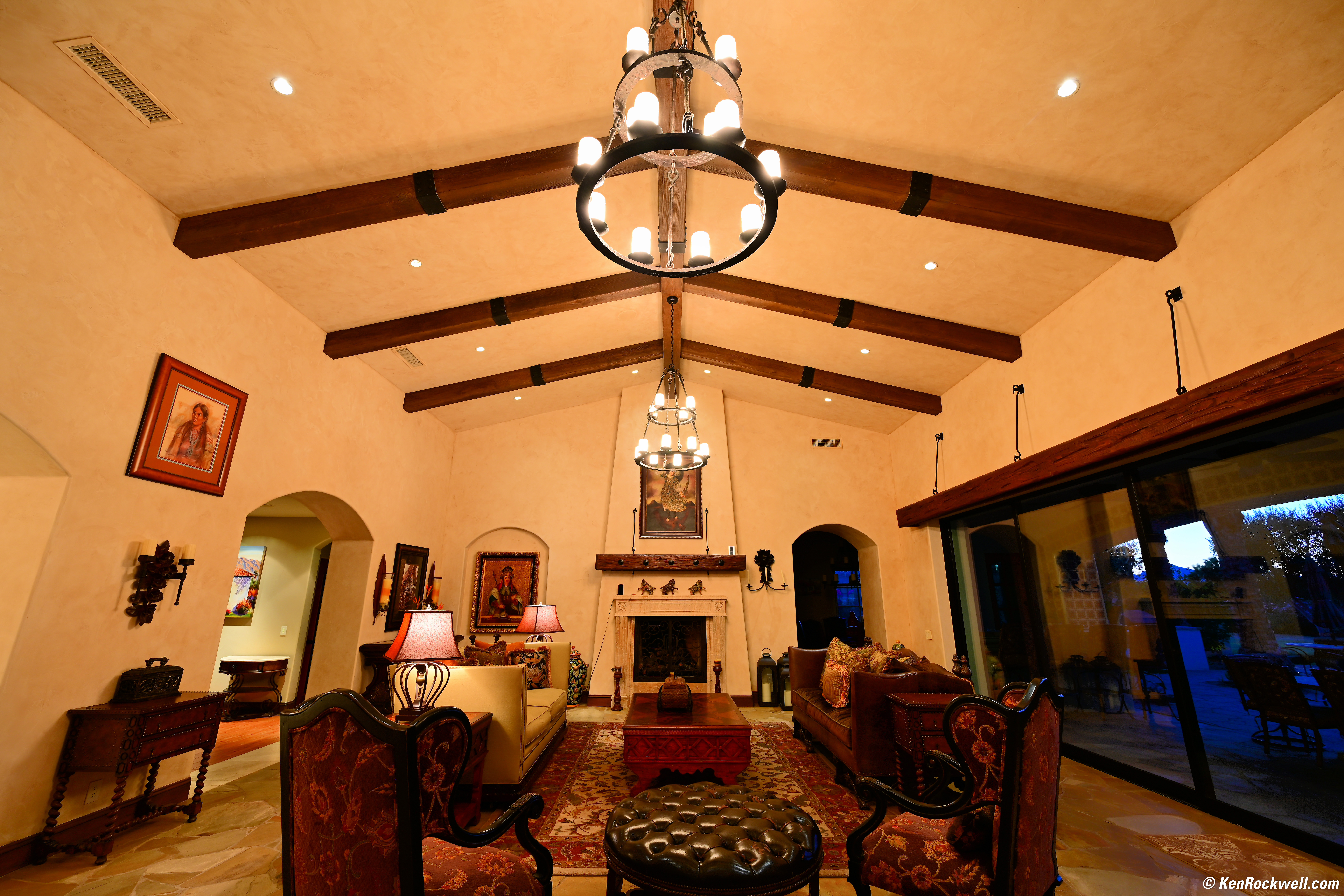 Desert Home Interior, 22 June 2019, 8:21 PM. Nikon Z7, Nikon 14-30mm at 14mm at f/5.6 for 1.3 seconds at ISO 64, Perfectly Clear v3.7. bigger, full-resolution or camera-original © file. As in the other shots, not everything is in focus; this isn't the lens' fault. This lens is so perfect that shooting at f/8 and smaller dulls the image due to diffraction; this lens is mostly performing at the limits of the laws of physics. Nikon's MTF charts confirm what I see. This is 2019, not 1989. Today just about every lens is far sharper than anyone actually needs.