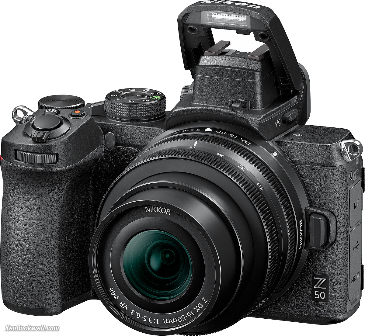ConnectorsNikon Z50. bigger. 3.5mm mic-in with plug-in power. Micro-B USB. HDMI type D.