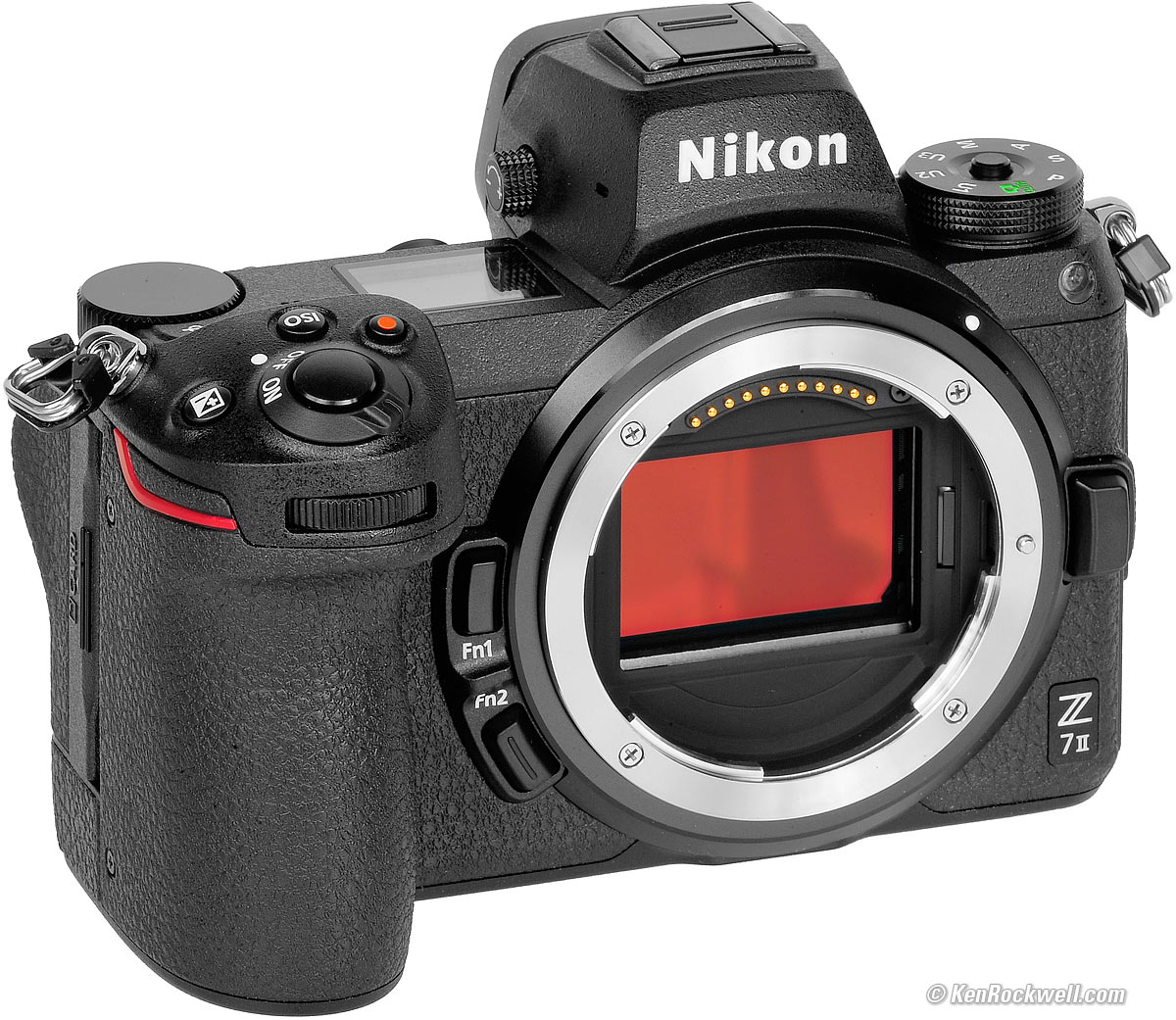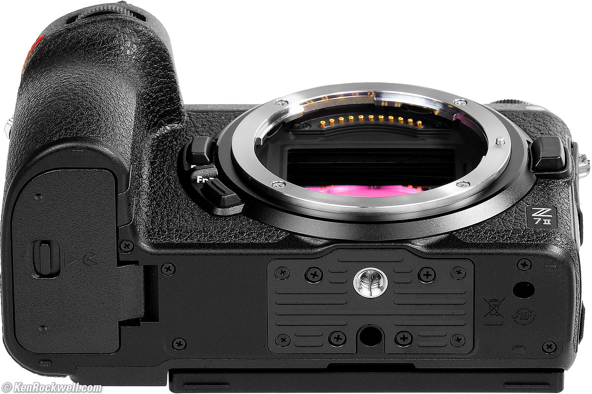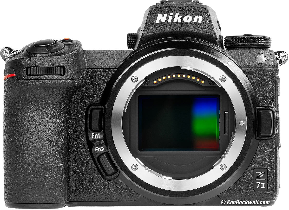 Lens MountNikon Z7 II. bigger. The Z7 II uses the Nikon Z mount optimized for Nikon's Z-mount mirrorless lenses. It has a 55mm inner diameter, larger than the old F mount, and has a flange focal distance of only 16.00mm. This is the shortest distance between flange and sensor of any pro camera: Sony E is 18.00mm, Fuji X is 17.70mm. Canon RF is 20.00mm, LEICA M is 27.80mm, Contax G is 29.00mm, Nikon's 1950s rangefinder S-mount is 34.85mm. Canon EF is 44.00mm and Nikon F is 46.5mm, so there is always enough room for someone to machine an adapter ring to go between anything and this new Nikon Z mount.
