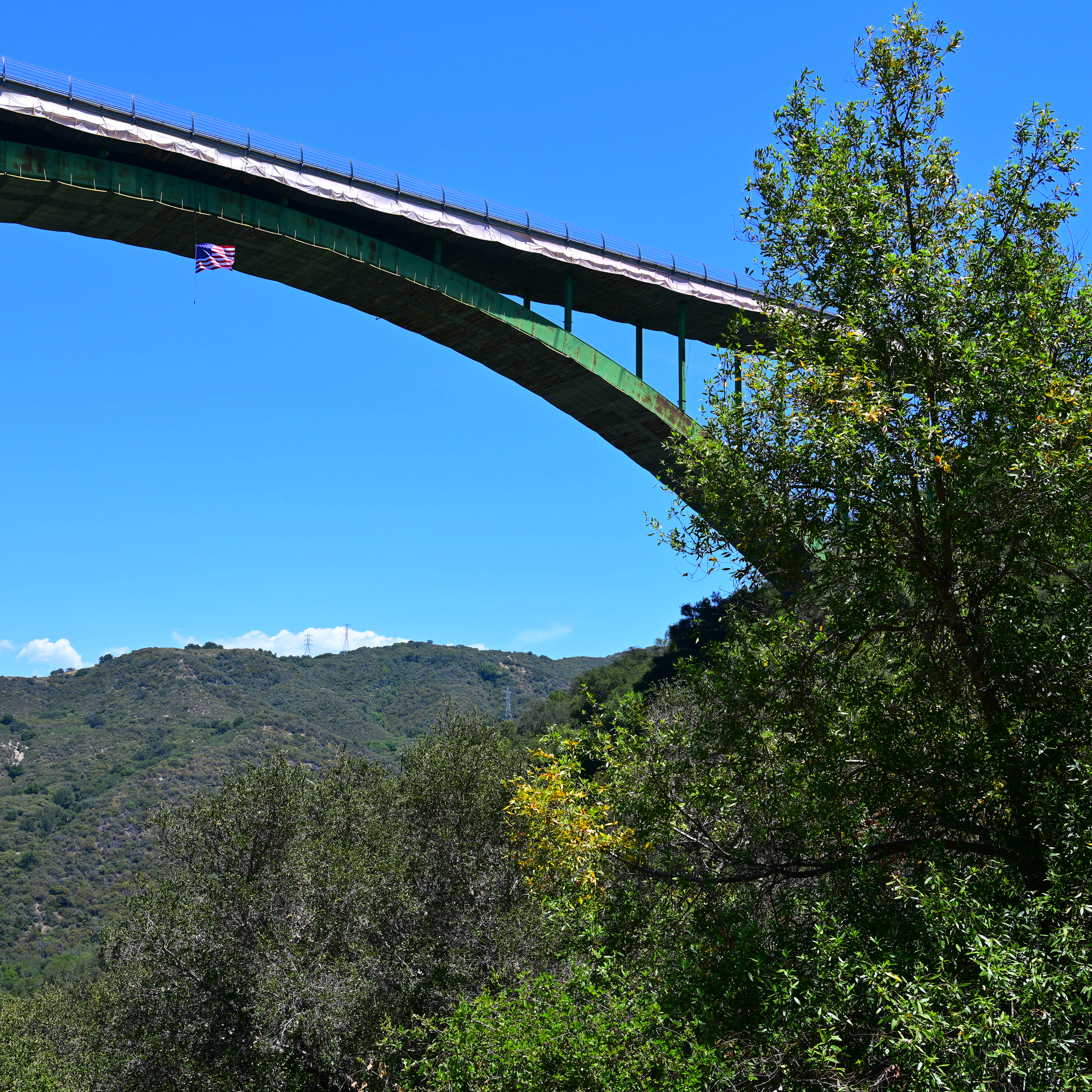 Playback performance topWhile vertical images are flagged as vertical, there's no auto rotation as you turn the camera during playback — something every iPhone has done. Playback scroll of zoomed images is defective. You have to release the controller before changing direction, otherwise it STOPS! Also if the center button is hit, scroll stops. This is weird; it should just ignore the center button and not need to go through neutral to change directions. This firmware defect makes it really choppy trying to scroll around a zoomed image. Even weirder, this works fine for live focus zoom, but not for zoomed playback. Like most Nikons for the past ten years, it saves highly-compressed thumbnail images as part of each image file. These speed-up the display of multiple images and the swapping and showing of full-size images. These highly-compressed thumbnails speed up operation, but can lead to banding in skies when playing full images one by one: Nikon Z7 II Playback Banding (actual view through electronic finder of square crop-mode image). bigger. Banding is only seen during full-size or multiple-image playback on the rear LCD or in the finder. It goes away as zoomed-in because the Z7 II reads from the full-resolution data. This is normal on playback if you're not zoomed; don't worry if you see this in your camera during playback. None of this banding is in the actual images: San Marcos Pass Bridge (Z72_0595.JPG), 1:26 PM, 01 June 2021. Nikon Z7 II in square crop mode, Nikon Z 24-200mm VR at 31mm (71mm equivalent on 6×6 Hasselblad) at f/8 at 1/500 at Auto ISO 64 (LV 13.6), exactly as shot. bigger or camera-original © square-cropped BASIC ★ JPG.