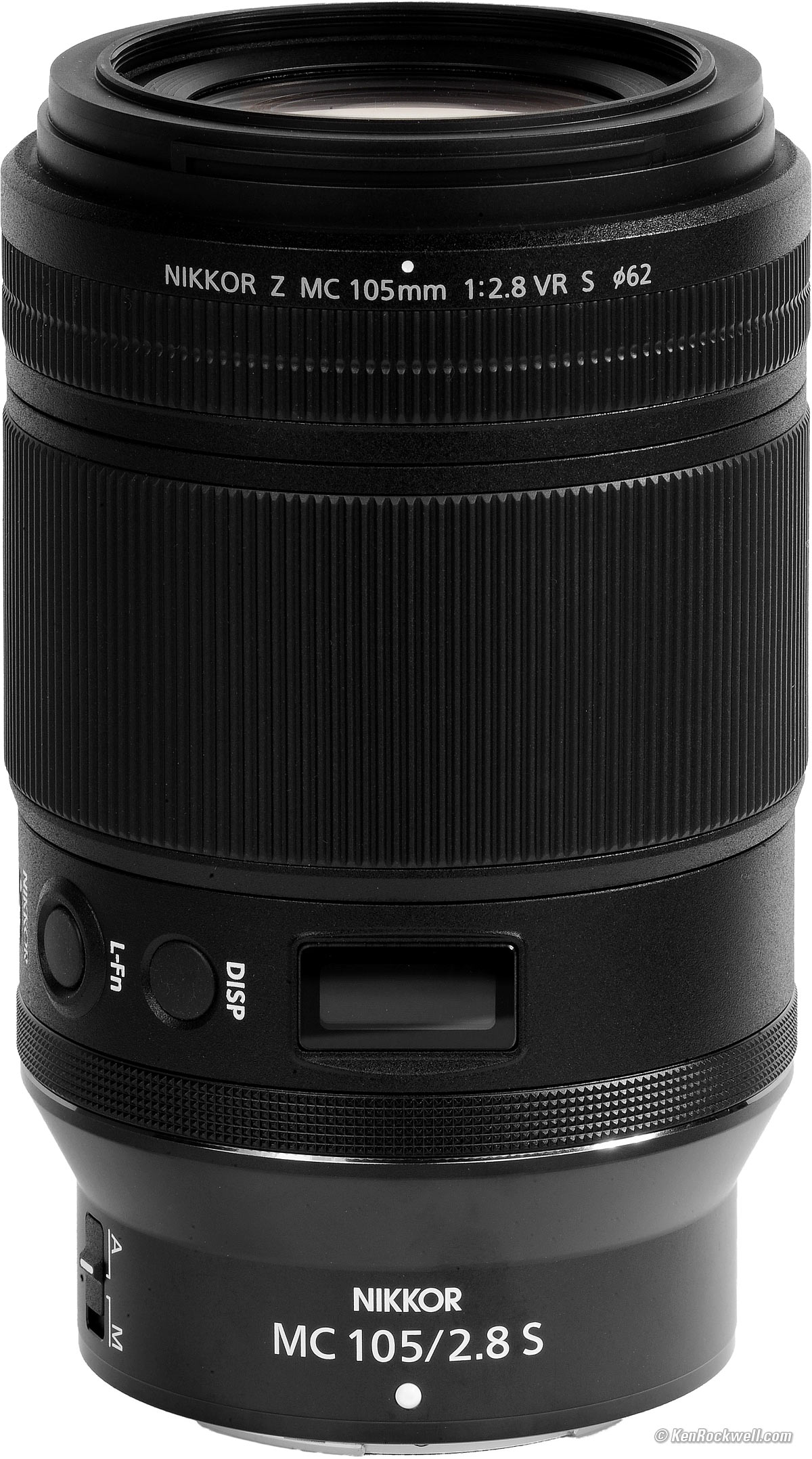 Name specifications topNikon calls this the NIKKOR Z MC 105mm f/2.8 VR S:NIKKOR: Nikon's brand name for all their lenses. Z: For Nikon's mirrorless cameras. MC: Macro lens. VR: Vibration Reduction. S: Subliminally suggests sexual satisfaction. The "S" designation has no other purpose than subliminal seduction; Nikon and electronics and automobile and every kind of marketer have been using letters like "S" and "X" in model numbers since the 1940s for this same reason. Nikon called their first 1946 rangefinder lens mount the "S" mount, then went whole-hog to the "F" SLR mount in 1959, used "S" again when they updated their AI lenses to AI-"S" in 1983, created AF-"S" SWM lenses in 1998 and here it is again.