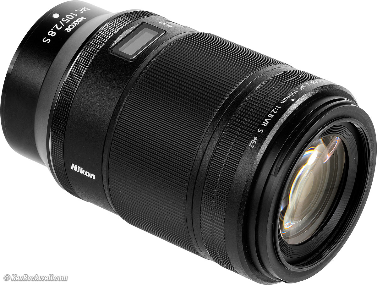 Nikon Z 105mm f/2.8 VR MacroFull-Frame 1:1 Macro (2021-)How to Shoot Macro Best Macro Lenses Compared New Good Bad Missing Format Compatibility Specifications USA Version Performance Comparisons User's Guide Recommendations Z9 Z8 Z7 II Z6 III Z6 II Z5 II Zƒ Z7 Z6 Z5 DX (APS-C): Zƒc Z50 II Z50 Z30 Z System Z Lenses All Nikon Lenses Flash Nikon Z 105mm f/2.8 VR Macro (62mm filters, 21.9 oz./ 622g, 1:1 macro at 0.96'/0.29m close focus, $997). bigger. I got mine at B&H . I'd also get it at Adorama, at Amazon or at Crutchfield, or used at eBay if you know How to Win at eBay. This 100% all-content, junk-free website's biggest source of support is when you use those or any of these links to my personally approved sources I've used myself for way over 100 combined years when you get anything, regardless of the country in which you live — but I receive nothing for my efforts if you get it elsewhere. Nikon does not seal its boxes in any way, so never buy at retail or any other source not on my personally approved list since you'll have no way of knowing if you're missing accessories, getting a defective, damaged, returned, dropped, incomplete, gray-market, store demo or used lens — and all of my personally approved sources allow for 100% cash-back returns for at least 30 days if you don't love your new lens. I've used many of these sources since the 1970s because I can try it in my own hands and return it if I don't love it, and because they ship from secure remote warehouses where no one gets to touch your new lens before you do. Buy only from the approved sources I've used myself for decades for the best prices, service, return policies and selection.