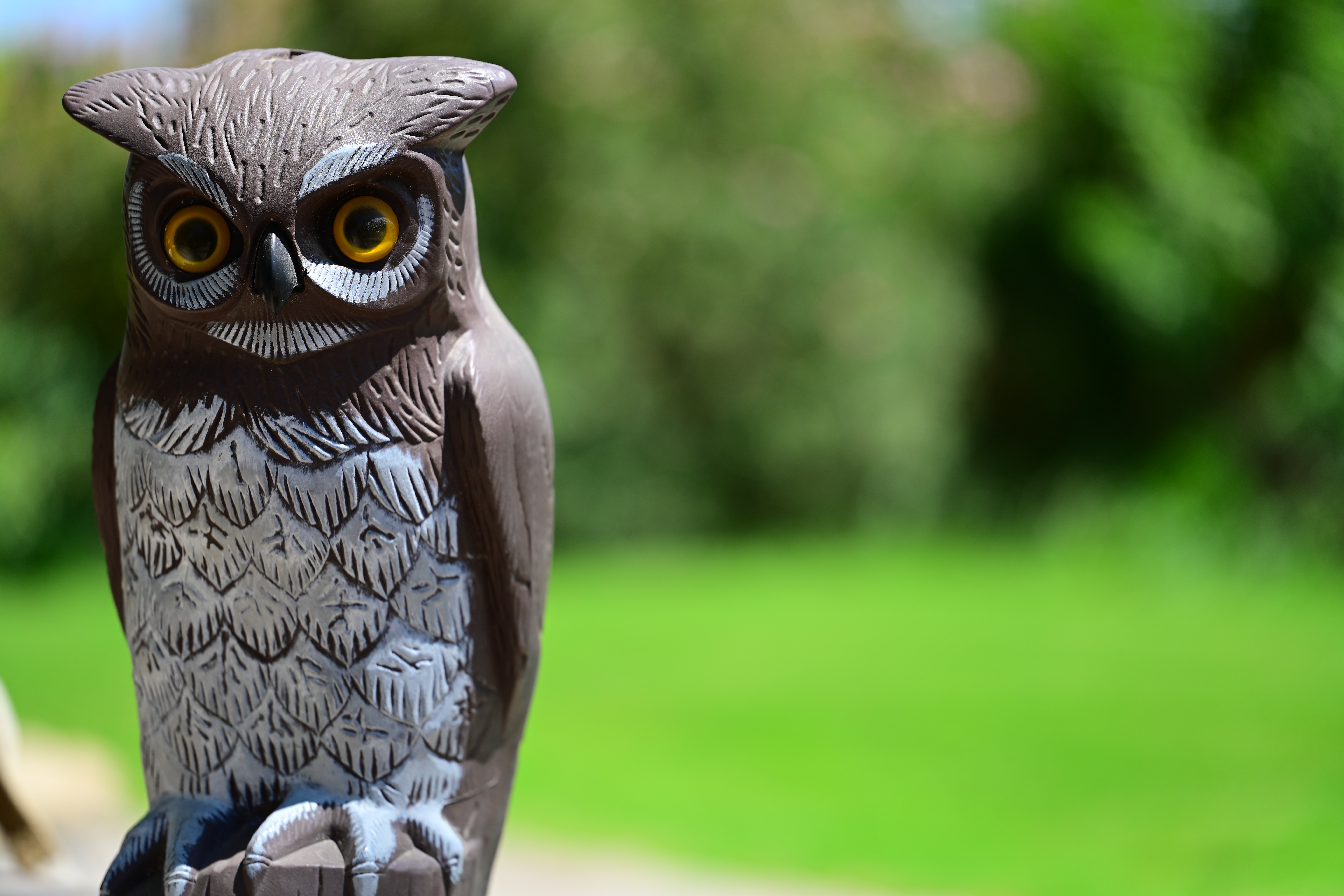 Bokeh performance topBokeh, the feel, character or quality of out-of-focus areas as opposed to how far out of focus they are, is neutral at large apertures and becomes poor at small apertures. Blur circles are just circles at large apertures, but start having rings around them at small apertures. Here are photos from headshot distance. Due to the compensating aperture system that always indicates the actual effective aperture as focused more closely, f/3 is the largest aperture available this close. Click any for the © camera-original file: Scarecrow Owl, 19 July 2021, shot on Nikon Z7 II at 1/640, 1/200, 1/50, and 1/13 at ISO 64. Due to the compensating aperture system that always indicates the actual effective aperture as focused more closely, f/3 is the largest aperture available this close. As always, if you want to throw the background as far out of focus as possible, shoot wide-open and get as close as possible.