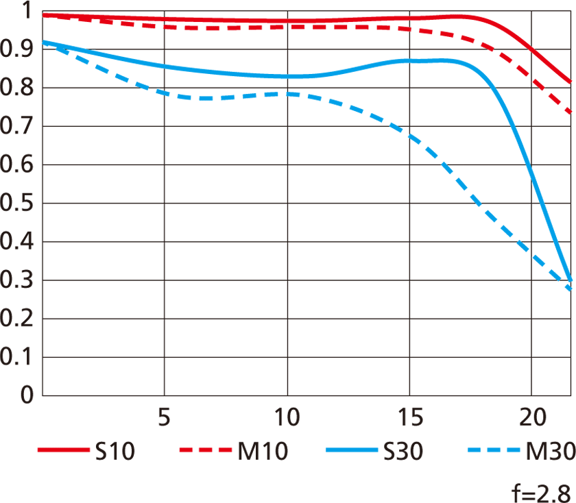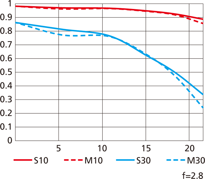 Nikon's MTF charts at 10 cyc/mm and 30 cyc/mm.